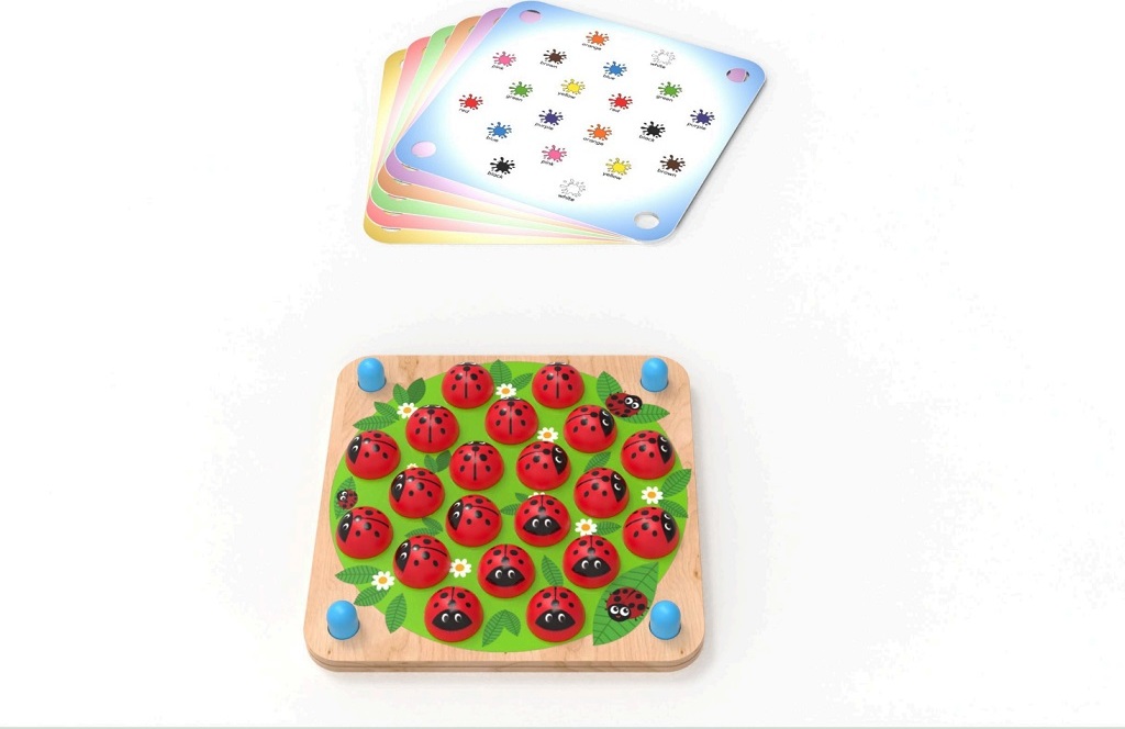 Vyberte si jednu z hracích kariet. Zasuňte kartu medzi 2 drevené dosky. Umiestnite na obrázky priložené lienky. Hra pokračuje ako klasické pexeso - hráč v každom kole obracia dve lienky a hľadá zhodné dvojice. Vyhráva ten, kto nájde najviac dvojíc.