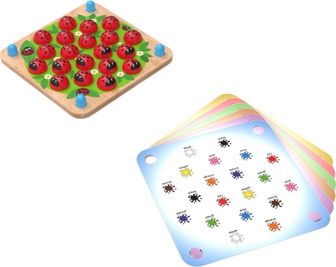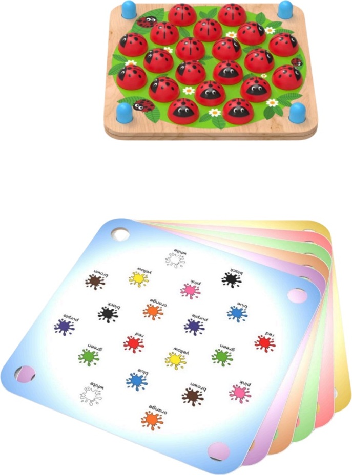Pexeso, ktoré učia aj bavia! Táto netradičná vzdelávacia hra zaujme deti i dospelých hravou formou, ktorá rozvíja pamäť, sústredenie a pozorovacie schopnosti. Na rozdiel od klasického pexesa deti neobracajú papierové kartičky, ale používajú drevené lienky, ktoré lepšie padnú do malých detských ručičiek. Stačí medzi dve drevené dosky vložiť jednu zo šiestich tematických predlôh, zakryť obrázky lienkami a zábavná hra môže začať. Deti si pri nej precvičia nielen pamäť, ale aj jemnú motoriku, logické myslenie a rozšíria si slovnú zásobu. Hra je ideálna pre samostatné hranie aj spoločné chvíle s rodinou.