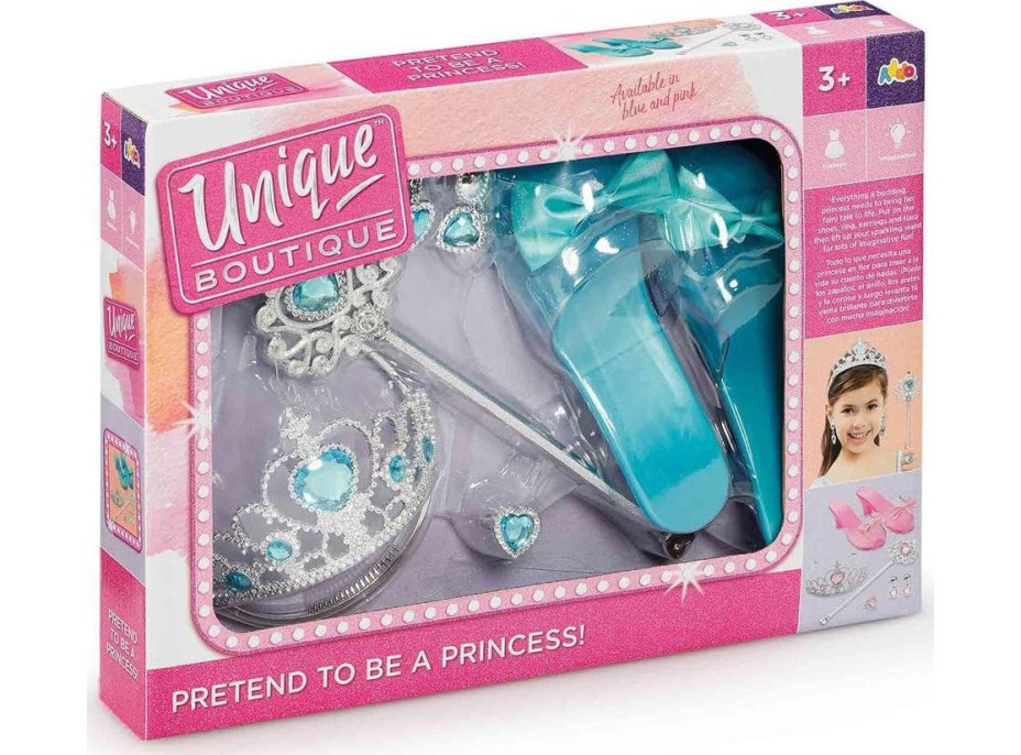 So setom pre malé princezné bude každé dievča pripravené na akúkoľvek kráľovskú príležitosť. Sada obsahuje: črievičky, prsteň, náušnice, korunku a iskrivú paličku.