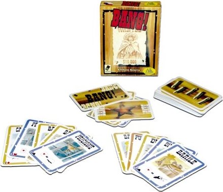 Bang, bang, bang! Banditi naháňa šerifa. Šerif páli po banditoch. Odpadlík kuje pikle chvíľu tam a zase tu. Guľky sviští okolo uší. A kto z hráčov je pomocník šerifa, pripravený za neho položiť život? A kto je bezcitný bandita, ktorý si praje šerifov koniec? Ak to chcete zistiť, taste svoje zbrane (teda karty)! V hre Bang! je dôležité sledovať ostatných hráčov, aby ste včas odhalili hráčovu identitu.
