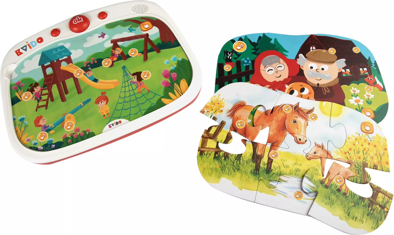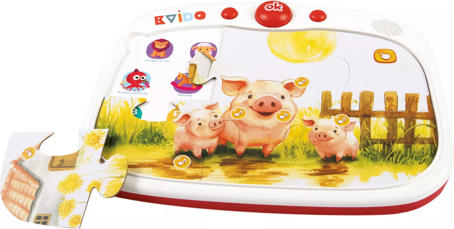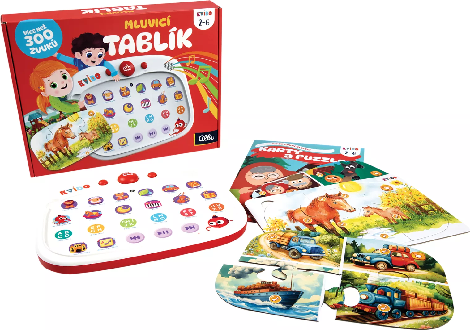 Dotykový tabuľ so zvukmi a kvízmi. Tabuľka, ktorá je v slovenskom jazyku, je doplnená o rozprávky a pesničky v angličtine. Deti môžu samy počúvať viac ako 300 zvukov zvieratiek, prírody, dopravy, rozprávok, pesničiek, riekaniek a mnoho ďalšieho. Navyše si zložia puzzle s rôznym počtom dielikov, vypočujú si ozvučené časti obrázkov a vyskúšajú si zábavné kvízy. Zložené puzzle či kartu stačí iba položiť cez ikony do tablíka.
