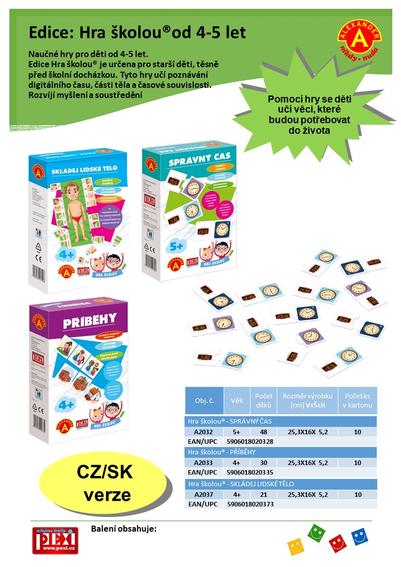 Hra je zo série náučných hier pre malé objavile "HRA ŠKOLOU®", ktorá bola ocenená ako "Hračka roku 2018". Náučné hranie pre malých zvedavcov od 4 rokov, pomocou ktorej sa deti učia spoznať časové postupnosti v príbehoch, logicky uvažovať a zdokonaľujú schopnosť hovoriť a popisovať. Hra rozvíja pozorovacie schopnosti, trénuje postreh a zdokonaľuje reč.