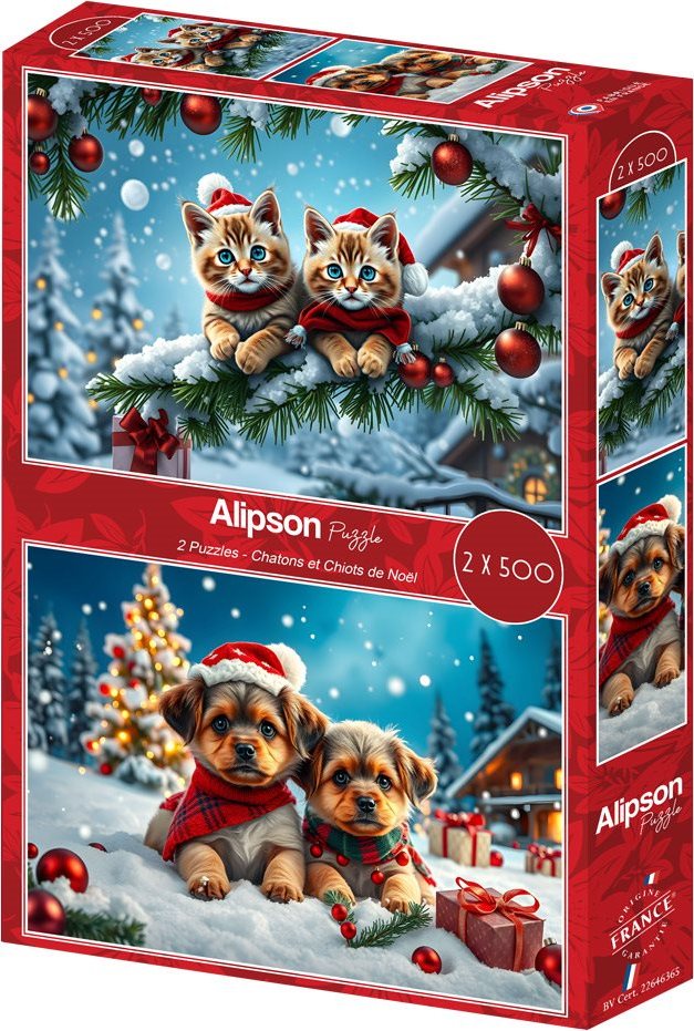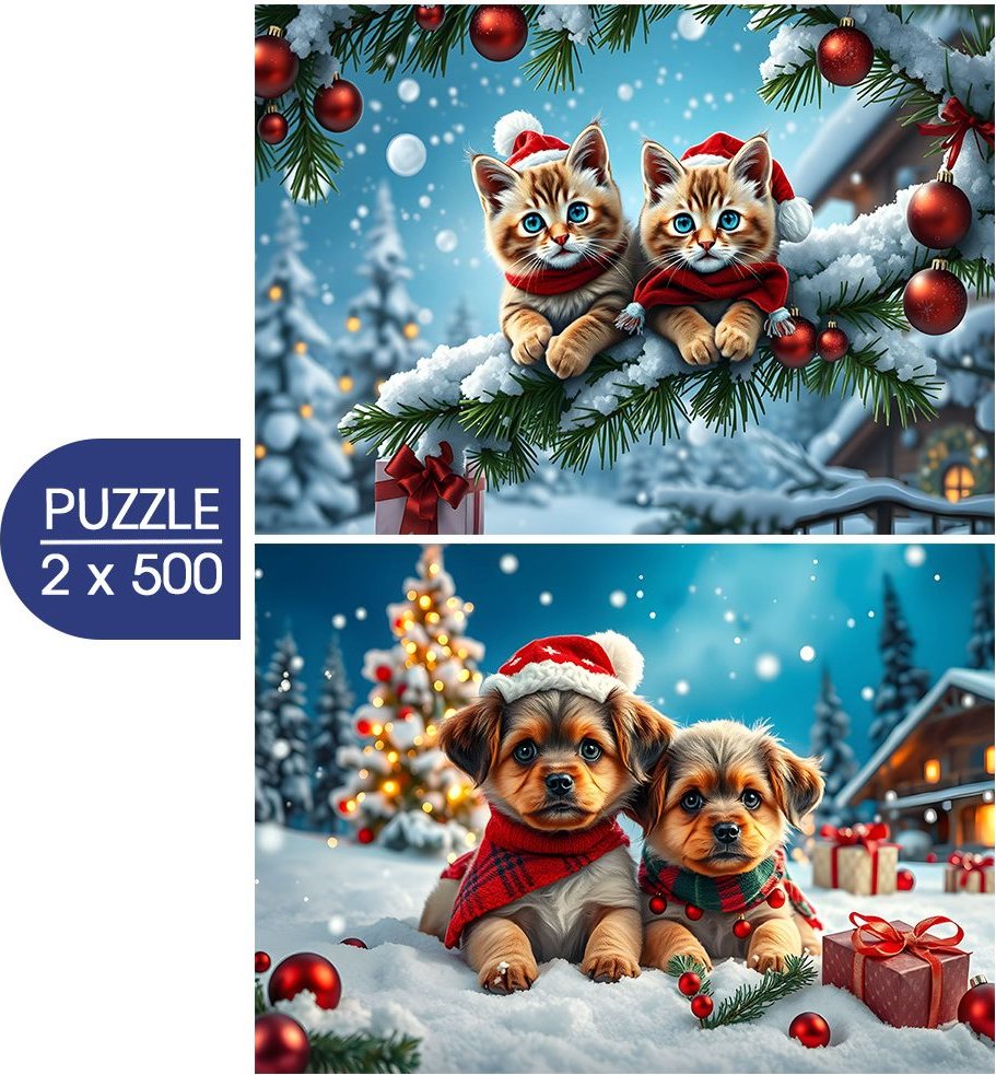 ALIPSON Puzzle Vianočné mačiatka a šteniatka 2x500 dielikov