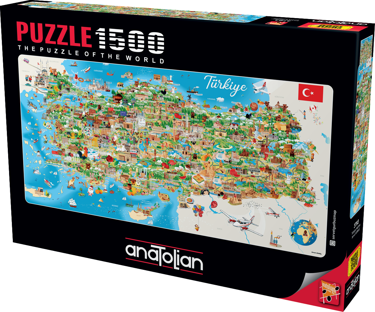 Puzzle je dodávané s praktickým stojanom, do ktorého je možné umiestniť veko krabice ako predlohu na skladanie. Upozornenie: Všetky texty a pomenovania na puzzle sú v tureckom jazyku . Výrobca PERRE - ANATOLIAN poskytuje službu zaslania chýbajúceho dielu. Službu je možné využiť za predpokladu, že motív je stále v ponuke výrobcu a je doložené číslo výrobnej šarže (uvedené na papierovom stojane alebo vo vnútri krabice). Rozmer zloženého puzzle cca 99 x 48 cmVlastnosti