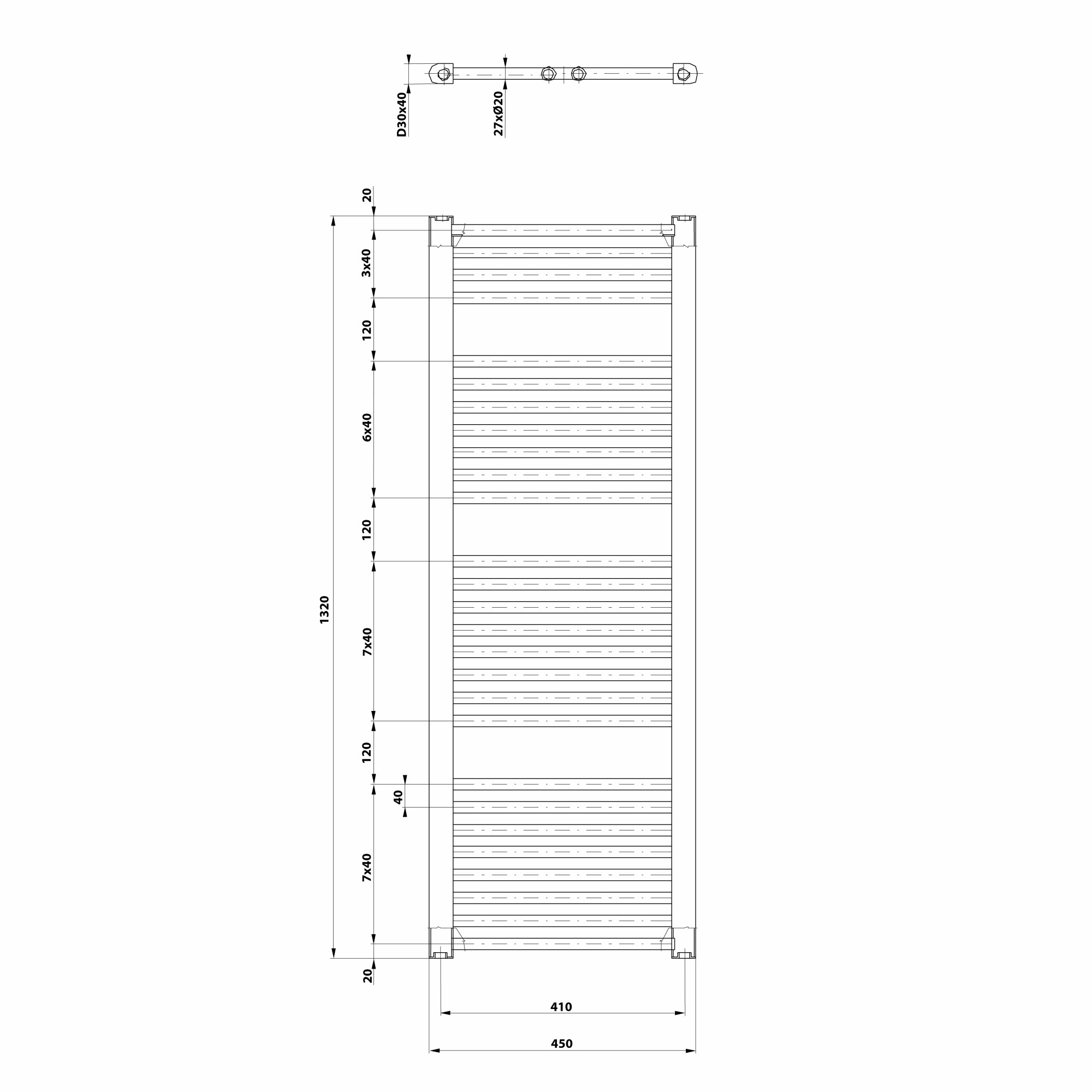 Aqualine DIRECT vykurovacie teleso s bočným pripojením 450x1320mm, čierna mat ILR34B