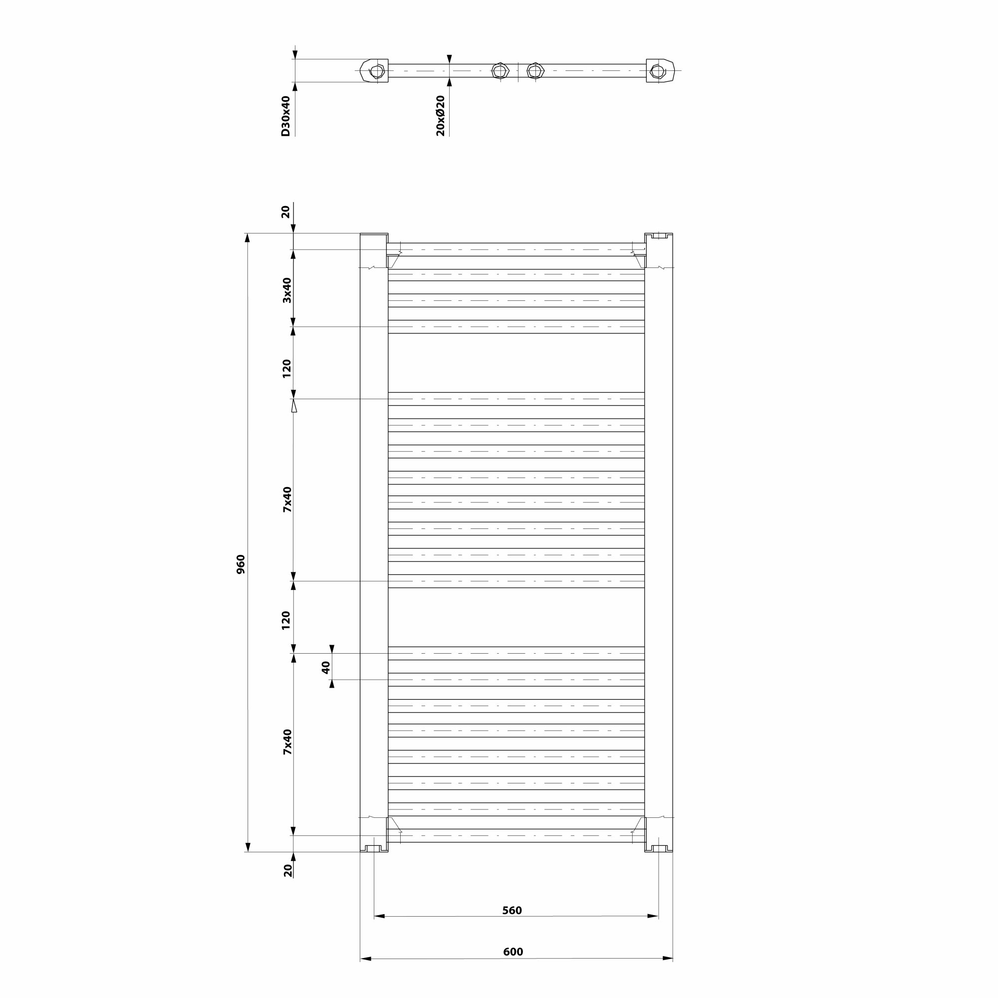 Aqualine DIRECT vykurovacie teleso s bočným pripojením 600x960mm, čierna mat ILR96B