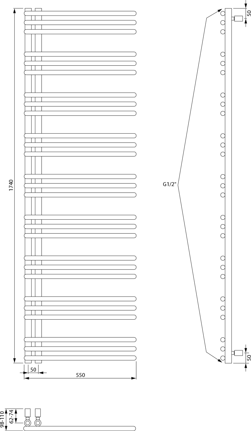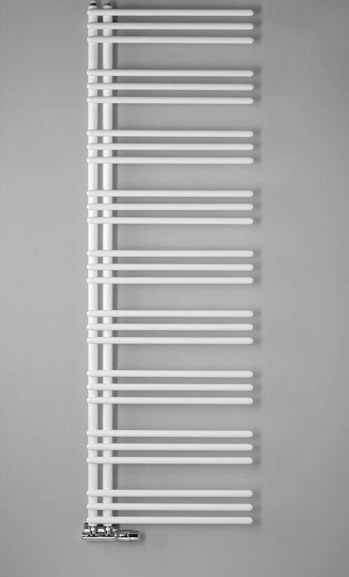 Klasické rúrky s kruhovým profilom zostavené v dizajnovom radiátore, ktorý je možné vďaka stredovému pripojeniu s rozstupom 50 mm kombinovať s ventilmi z našej ponuky.