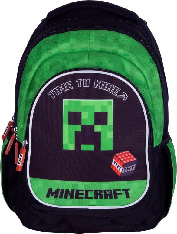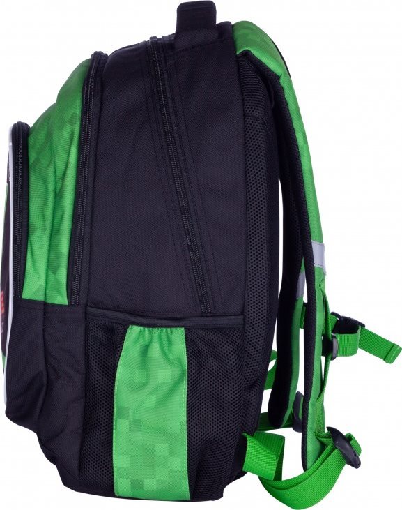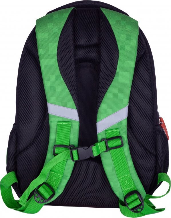 Školský batoh z kolekcie Minecraft. určený pre žiakov základných škôl vo veku od 6 do 9 rokov má kompaktné rozmery, ale zmestia sa doň všetky potrebné veci do školy organizér vám pomôže usporiadať drobné príslušenstvo inovatívny chrbtový panel so systémom Ergo Back pomáha uľaviť chrbtu a ramenám bočné sieťované vrecká na nápoje reflexné prvky Parametre: rozmery: 39 x 29 x 17 cm objem: 24 l hmotnosť: 680 g materiál: 100% polyesterVlastnosti