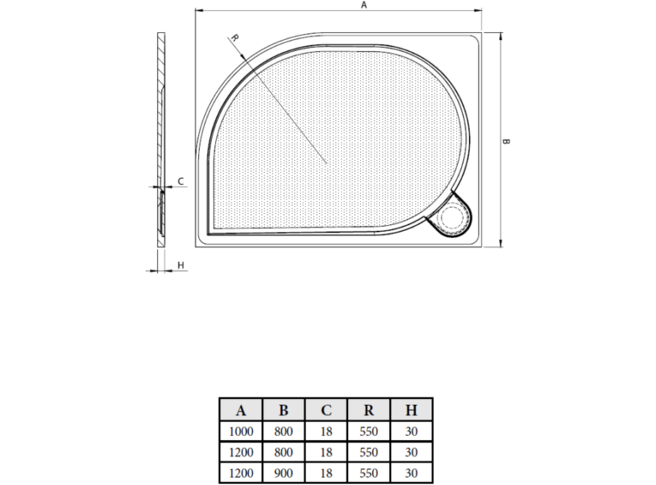 Asymetrická štvrťkruhová sprchová vanička LAKA z liateho mramoru