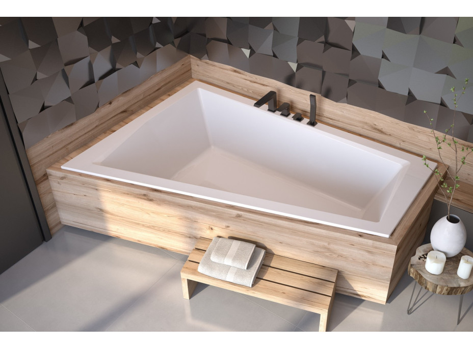 Dizajnová asymetrická vaňa pre dve osoby INTIMA DUO SLIM s ostrými krivkami s veľmi nízkou hranou (iba 15 mm ). Táto vaňa je vhodná skôr do menších kúpeľní . Vaňa ponúka obojstranné ležanie .