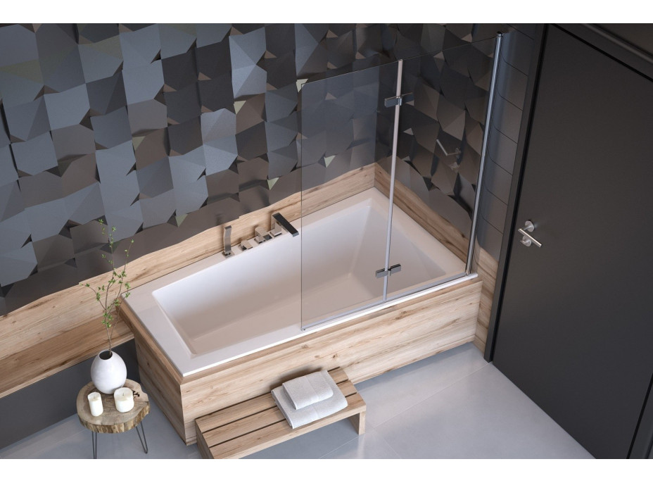 Dizajnová asymetrická vaňa INTIMA SLIM s ostrými krivkami s veľmi nízkou hranou (iba 15 mm ). Táto vaňa je vhodná skôr do menších kúpeľní . Vaňa ponúka obojstranné ležanie .