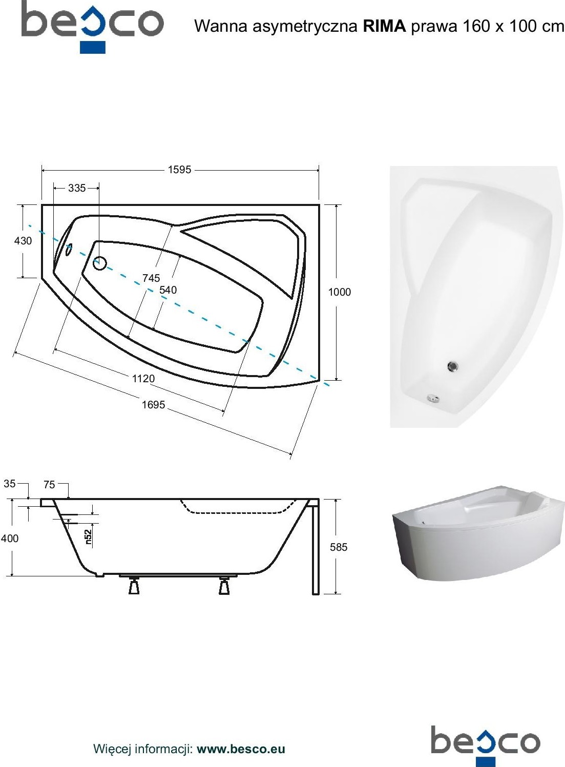 Asymetrická rohová vaňa RIMA je vyrobená z kvalitného sanitárneho akrylátu , ktorý uspokojí aj tie najnáročnejšie požiadavky. Ponúkame u nej záruku 10 rokov. Asymetrická vaňa RIMA s uhlopriečne riešeným vnútorným priestorom je najobľúbenejším modelom.