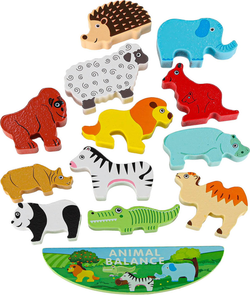 Balenie obsahuje 12 zvieracích dielikov a balančnú dosku.