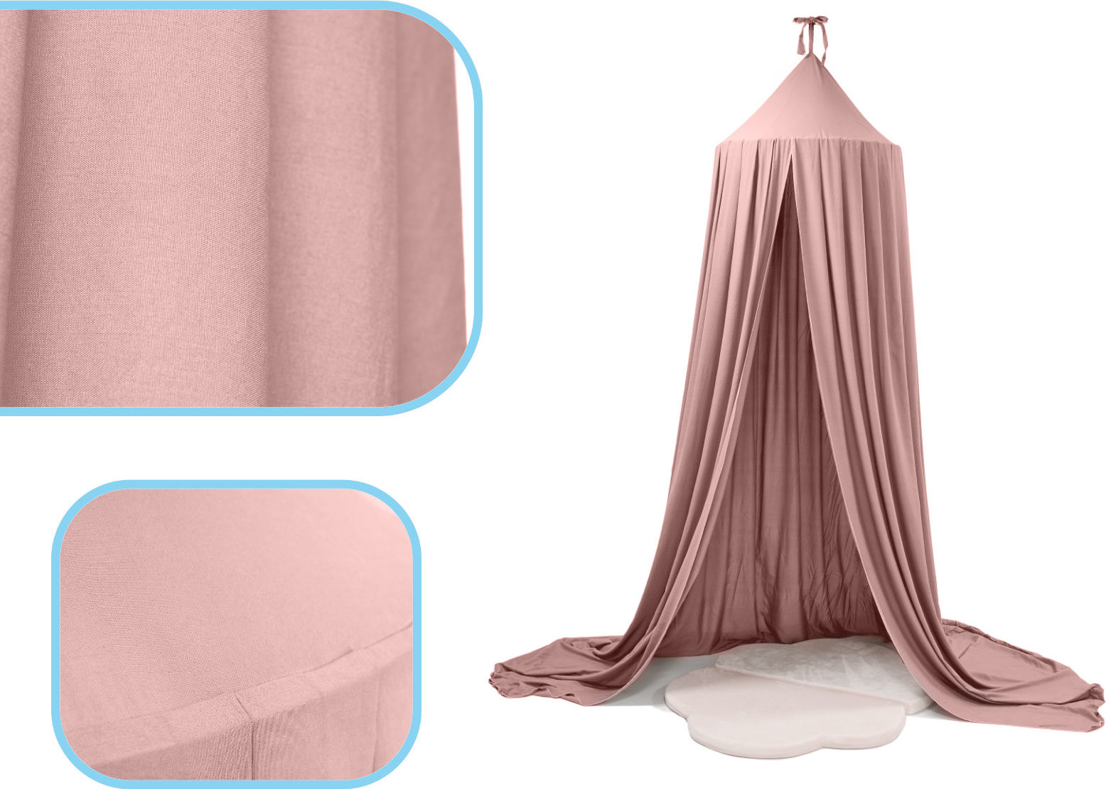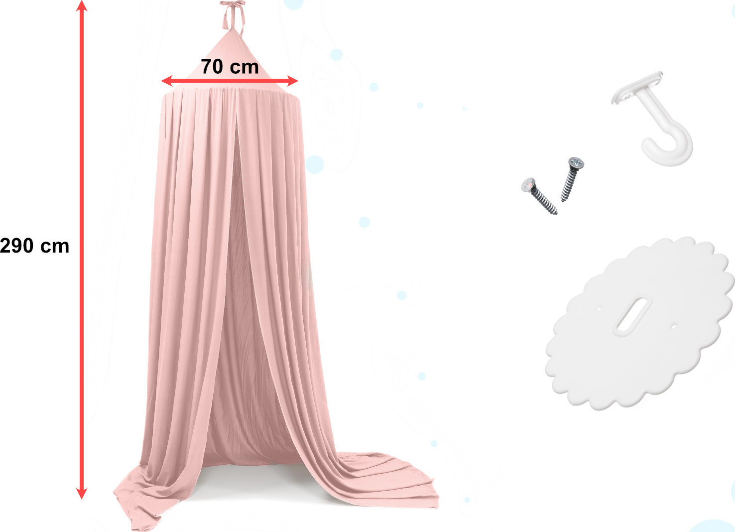 Jedinečný zavesený baldachýn nielenže vyzerá nápadito, ale tiež zaistí, že vaše dieťatko bude pokojne spať. Je to elegantná a funkčná dekorácia do izby, ktorá si získa srdce dieťaťa aj rodičov. Baldachýn sa ľahko zostavuje - všetky súčasti potrebné na jeho pripevnenie sú súčasťou balenia. Zavesený nad detskou postieľkou vytvorí bezpečnú a útulnú atmosféru a uľahčí zaspávanie. Ochráni vaše dieťa pred vonkajšími podnetmi a zatemní priestor počas popoludňajšieho spánku. Baldachýn je tiež ideálny ako stan. Bude to útulný úkryt, kde nájdu útočisko plyšoví kamaráti, obľúbené autíčka, bábiky alebo figúrky. Bude to tiež ideálne miesto na odpočinok, upokojenie a spoločné čítanie knihy.