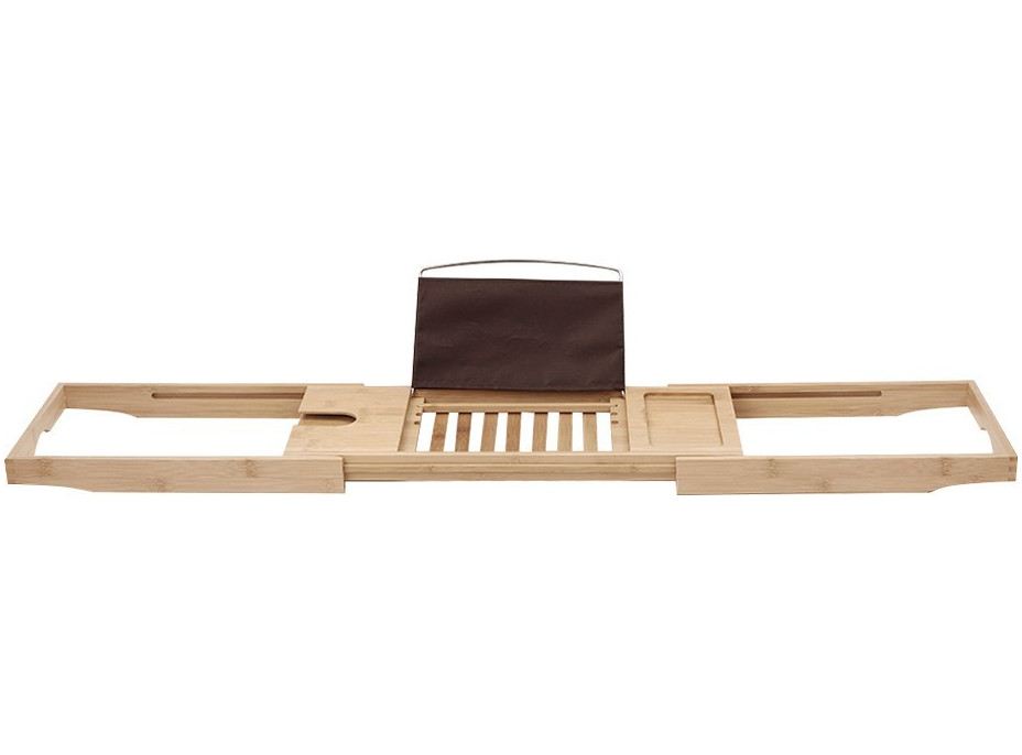 Praktická odkladacia polička vyrobená z bambusového dreva sa stane skvelým pomocníkom každého kúpania. Či už potrebujete odložiť hygienické potreby alebo drink, tak táto polica bude vždy po ruke. Polica je bohato vybavená. Nájdete na nej opierku na knihu či tablet, držiak na pohár na víno a odkladaciu poličku na mydlo či iné doplnky. Vďaka použitiu dreva z bambusu veľmi dobre odoláva vlhkosti.