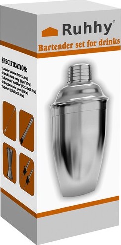 - obsah: šejker, odmerka (Jigger) 15/30 ml, barová lyžička, tamper a 2 nalievačky