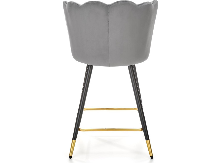 Jedinečná barová stolička zaujme svojím operadlom v tvare tulipánu. Sedák aj operadlo sú čalúnené zamatovo hebkou látkou príjemnou na dotyk. Podstavu stoličky tvoria nohy z práškovo lakovanej ocele v čiernej farbe. Zlaté akcenty spolu s originálnym dizajnom dodávajú stoličke eleganciu a štýl.