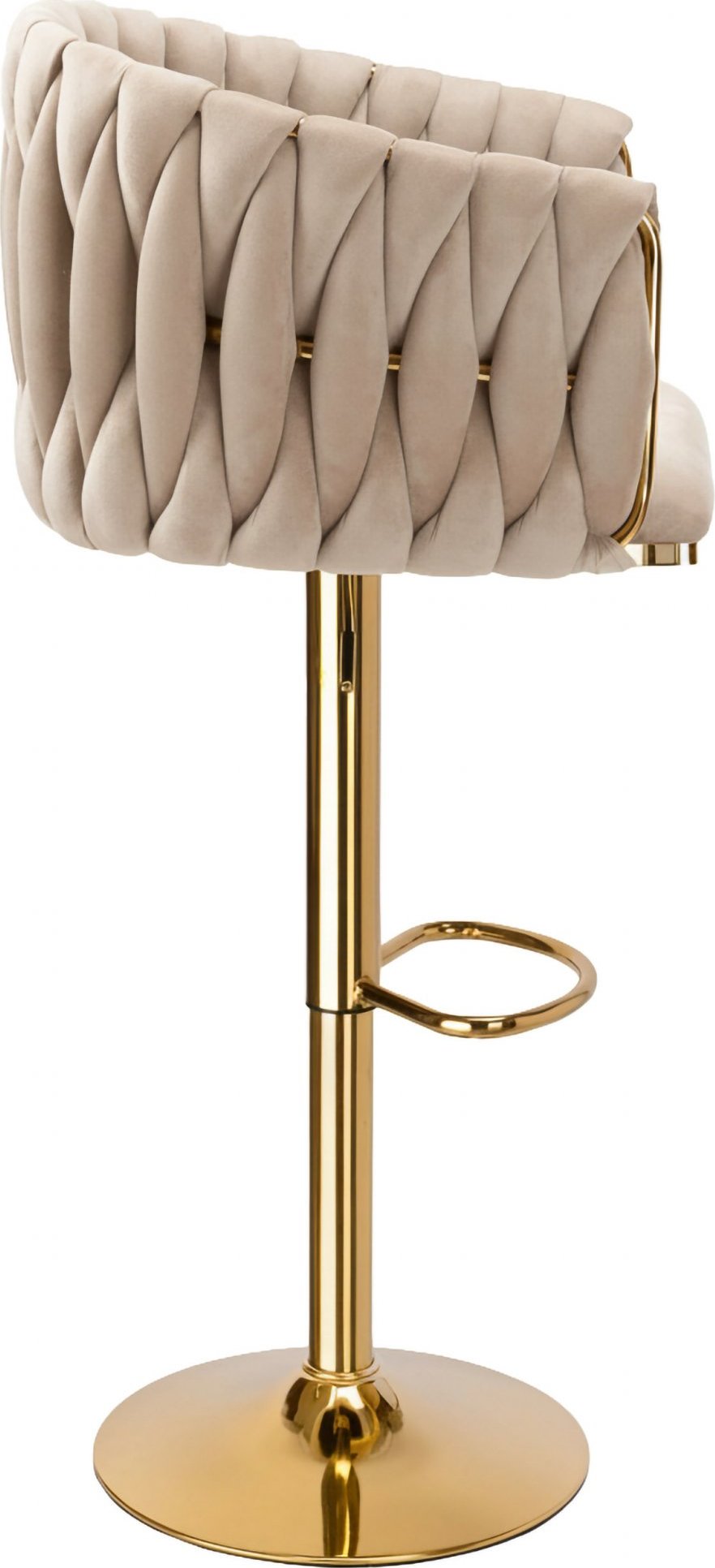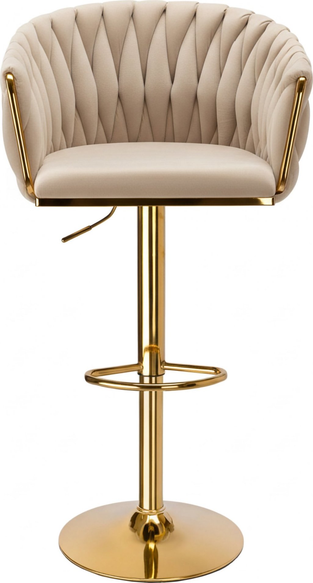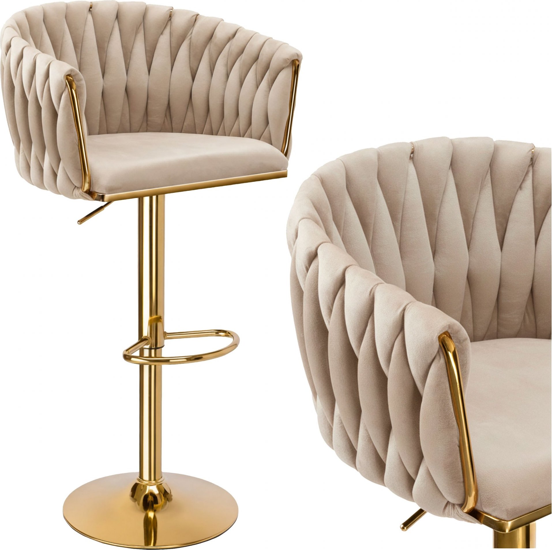 Štýlová zamatová stolička Cofton v béžovej farbe je kombináciou elegancie, pohodlia a funkčnosti. Ideálne do moderných kuchýň, kuchynských ostrovčekov alebo štýlových domácich barov. Vďaka mäkkému zamatovému čalúneniu a robustnej zlatej základni poskytuje pohodlné sedenie a dodáva luxusný nádych každému interiéru.