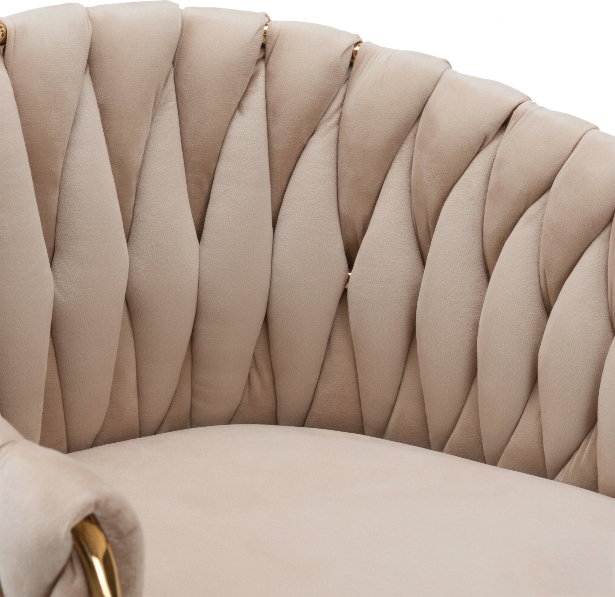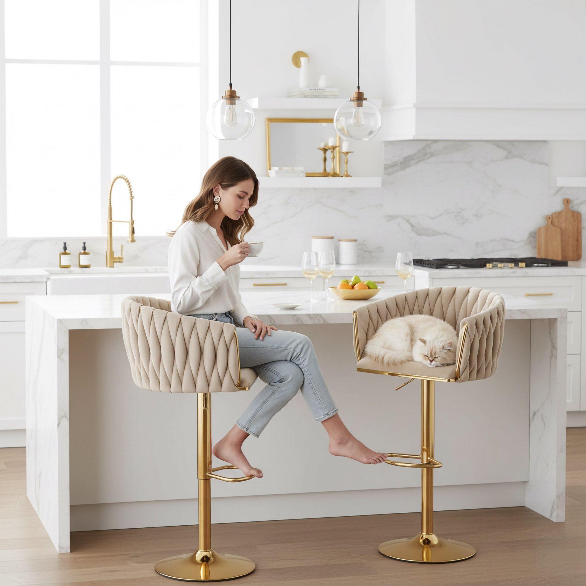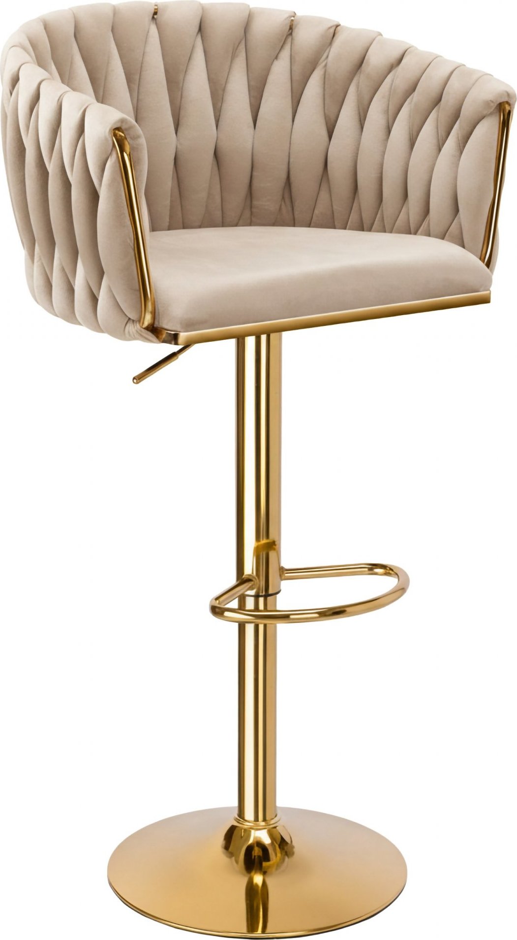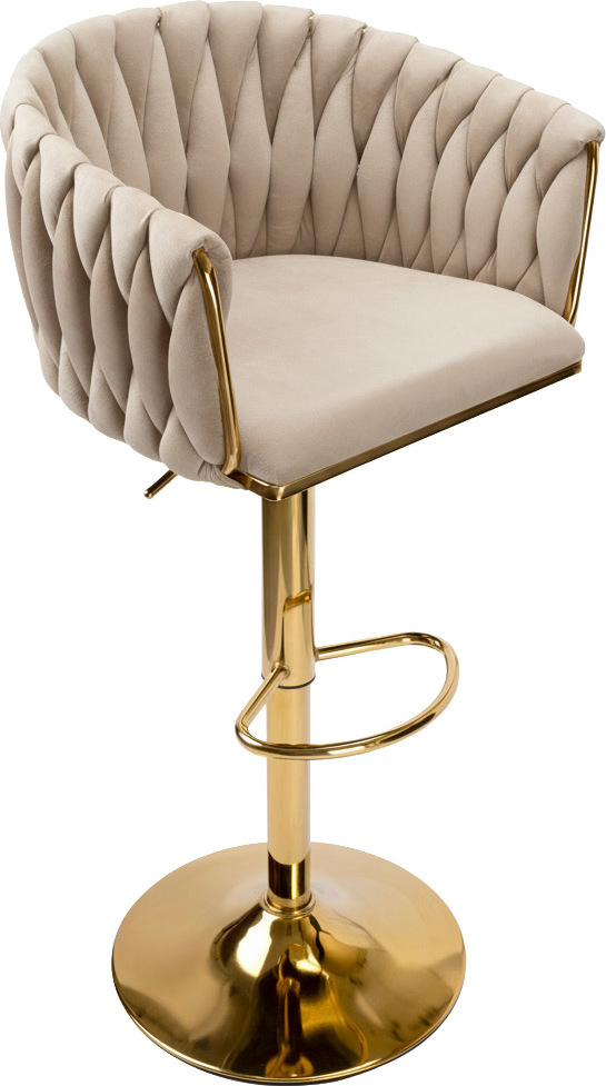 Štýlová zamatová stolička Cofton v béžovej farbe je kombináciou elegancie, pohodlia a funkčnosti. Ideálne do moderných kuchýň, kuchynských ostrovčekov alebo štýlových domácich barov. Vďaka mäkkému zamatovému čalúneniu a robustnej zlatej základni poskytuje pohodlné sedenie a dodáva luxusný nádych každému interiéru.