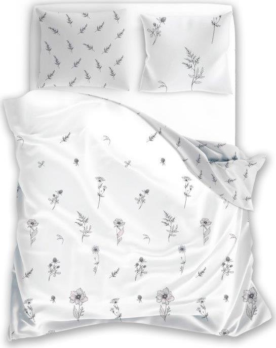 Bavlnené obliečky LETNÝ SEN Šedé kvety - biele / šedé - 160x200 cm