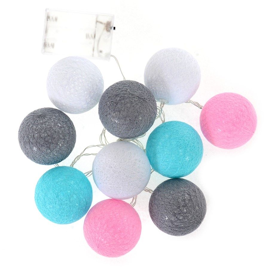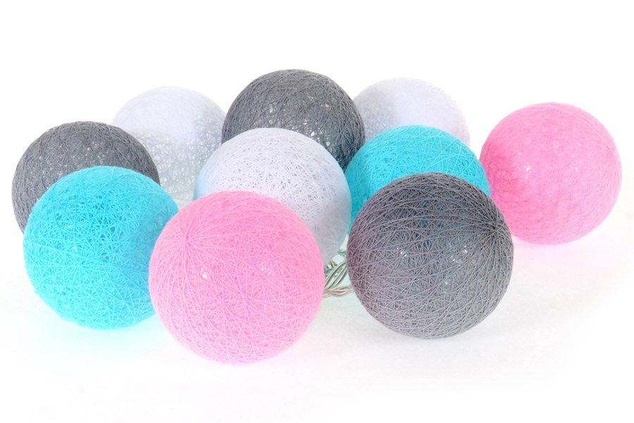Bavlnené svietiace guličky LED 10 ks - ružové a mätové
