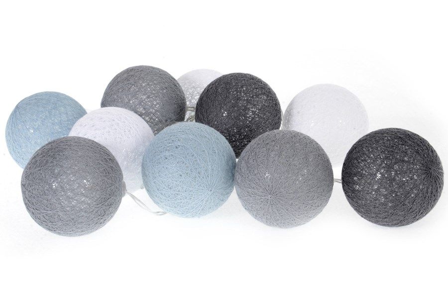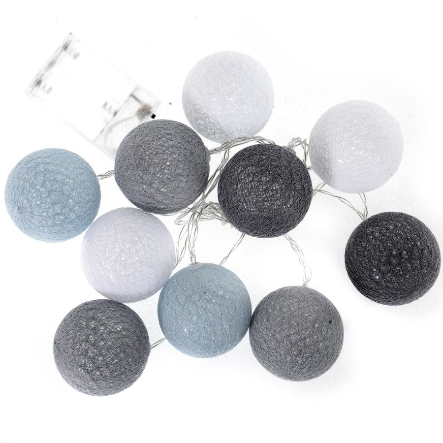Bavlnené svietiace guličky LED 10 ks - svetlo šedé