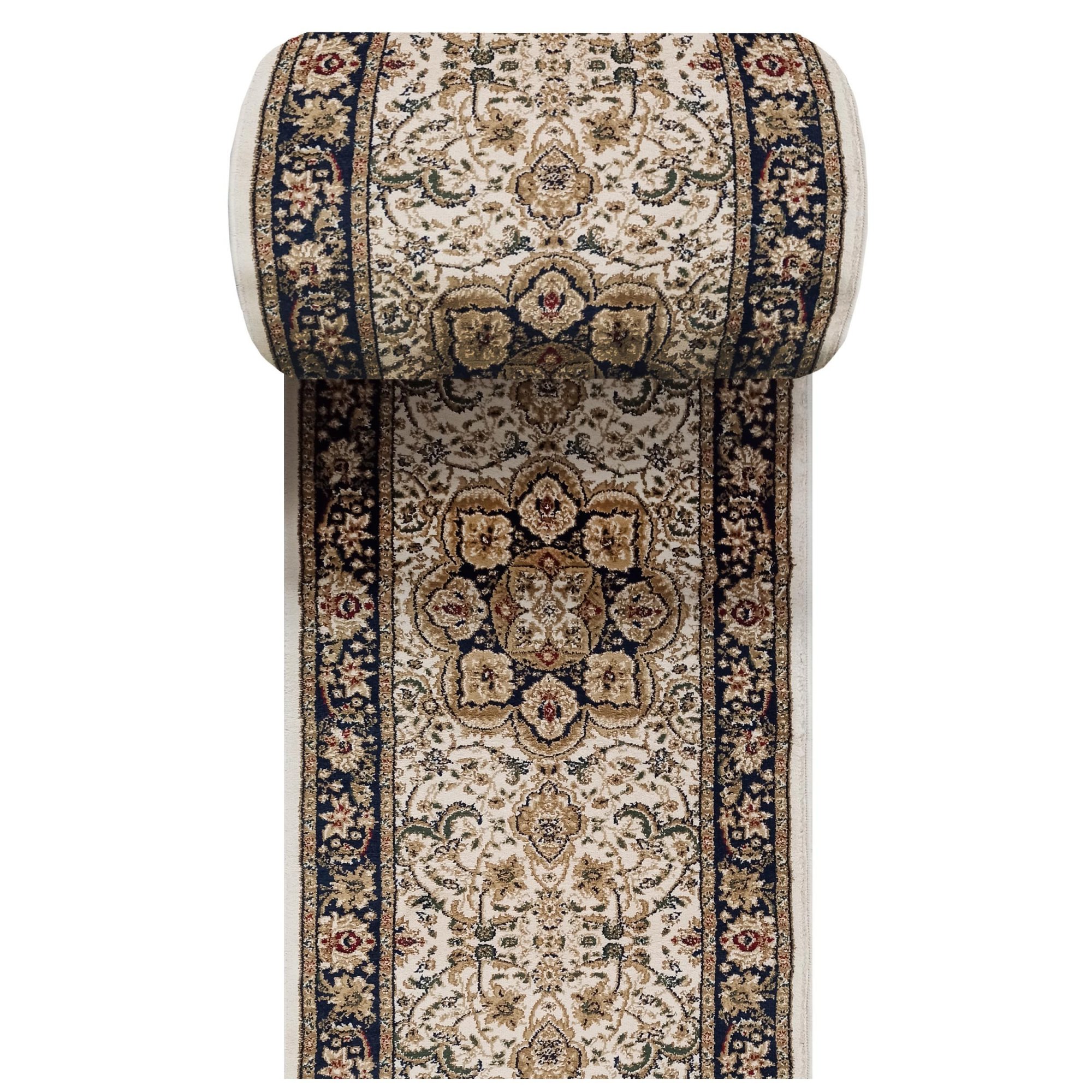 Behúň NOBLE ornament - krémový/tmavomodrý