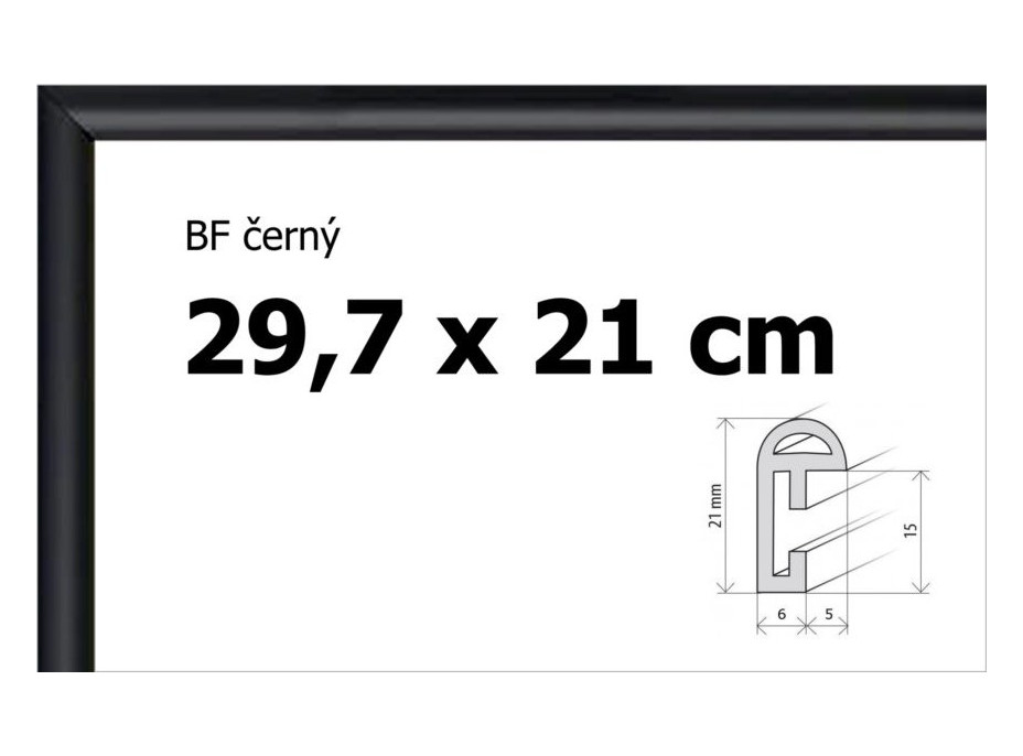 Plastový rám v čiernej farbe na zarámovanie Vašej fotografie alebo plagátu sa stane elegantným doplnkom každého moderného interiéru. Zavesiť je možné na výšku aj na šírku. Obrazový rám sa skladá zo skla hrúbky 2 mm so zabrúsenými hranami a základnej podložky so sponami na zavesenie. Spony sú umiestnené na dlhšej aj kratšej strane rámu pre možnosť zavesenia na výšku alebo na šírku. Výška profilu plastového rámu je 21 mm. Veľkosť rámu 29,7 x 21 cm zodpovedá štandardnému formátu A4. Uvedená veľkosť rámu = veľkosť zadnej dosky alebo obrazu, ktorý je vložený z rubovej strany do rámu. Neuvádzame celkový vonkajší rozmer rámu. Z profilu každej lišty zistíte jej šírku a zakrytie vloženého obrazu. Na prianie zhotovíme rám v akomkoľvek rozmere. Dodacia lehota cca 14 dní. Všetky rámy je možné využiť aj na obrázky, puzzle, dokumenty, diplomy, ocenenia a pod.Vlastnosti