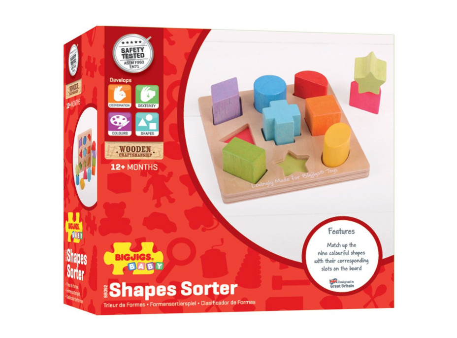 Priraďte každý z týchto mohutných, pestrofarebných drevených tvarov k správnemu slotu na základnej doske.