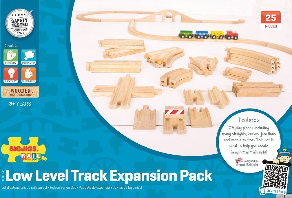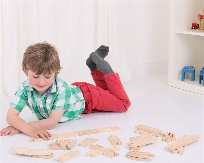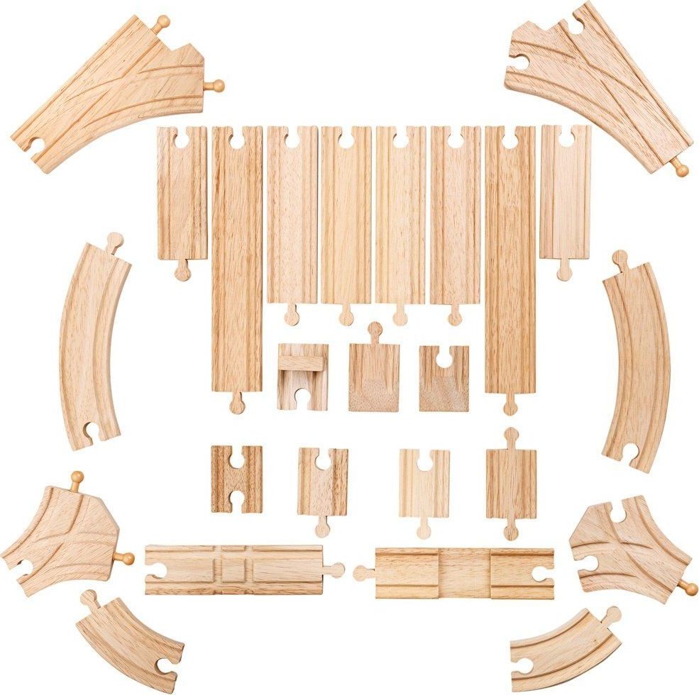 Sada obsahuje 25 kusov kvalitných drevených dielov koľají, ktoré je možné pridať k akejkoľvek existujúcej kolekcii vláčikodráh.