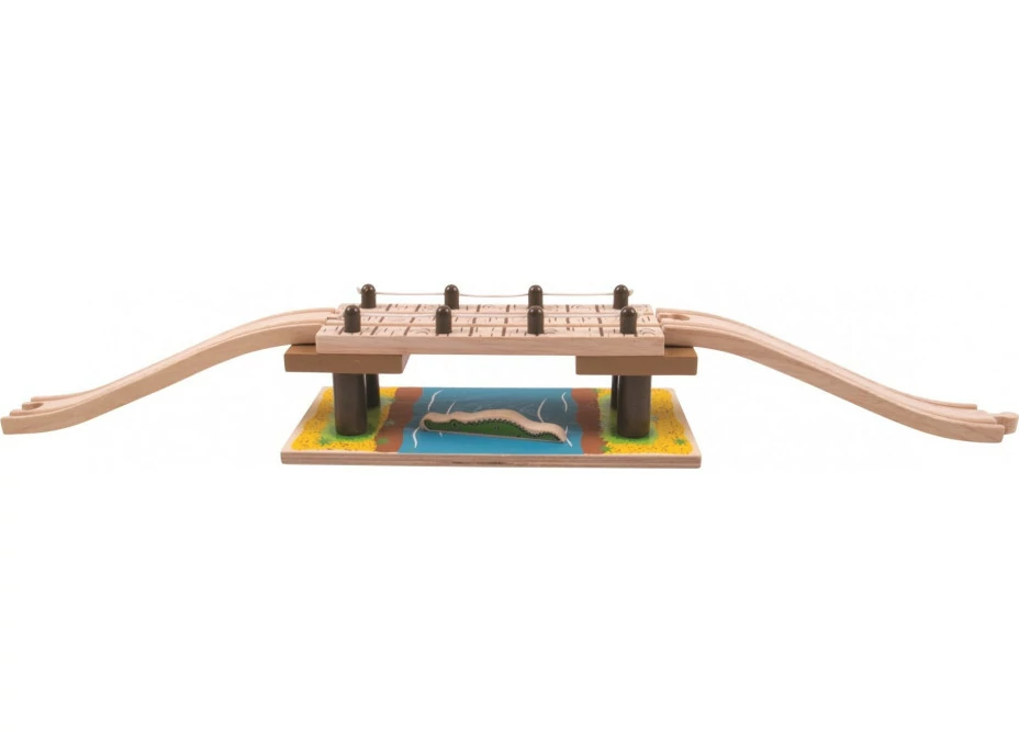 Dávajte pozor na hladného krokodíla, ktorý stráži vodu, ale nenechajte sa zastaviť vo vašej ceste. Malí prieskumníci preskúmajú zázraky Safari, priblížia sa k mostu a pozerajú sa na krokodíla, ako sa pomaly supia. Pridá skvelú interaktivitu pre všetky drevené vlakové súpravy a ľahko sa pripája k inej drevenej dráhe a príslušenstvu. Táto 4 dielna sada obsahuje robustný lanový most Safari s riekou pod ním a krokodíla. Skvelý spôsob, ako podporiť tvorivé a kreatívne myslenie.