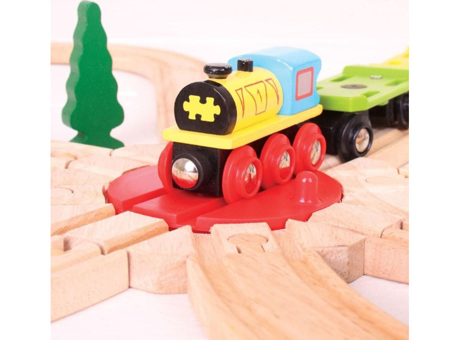 Osemcestná točňa Bigjigs Rail umožňuje vlakom ľahko zmeniť smer a ísť jedným z 8 smerov.
