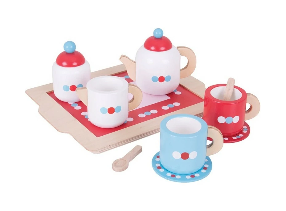 Čaj pre dvoch? Naši najmenší si môžu vyskúšať svoje hostiteľské schopnosti s touto drevenou čajovou sadou a podnosom Bigjigs Toys. Táto drevená herná súprava má všetko, čo potrebujú na usporiadanie dokonalého čajového večierka. Obsahuje čajovú kanvicu s pokrievkou, 2 drevené šálky a podšálky, cukorničku s pokrievkou, 2 varešky, kanvičku na mlieko a tácku. Tento rozkošný čajový servis podporuje kreatívne a nápadité hranie rolí, rozvíja sociálne zručnosti a zlepšuje obratnosť. Vyrobené z vysoko kvalitných, zodpovedne získaných materiálov. Spĺňa aktuálne európske bezpečnostné normy.