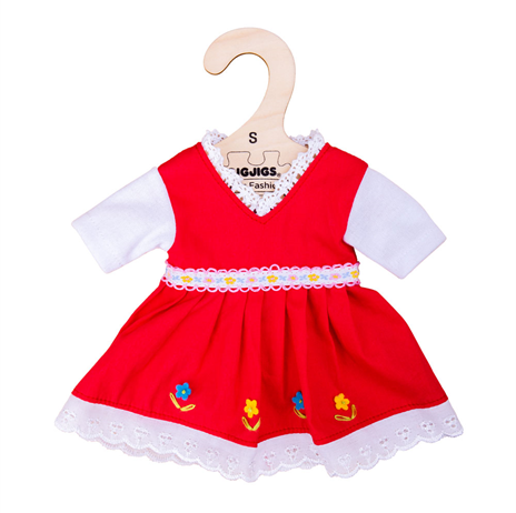 Bigjigs Toys Červené kvetinové šaty pre bábiku 28 cm