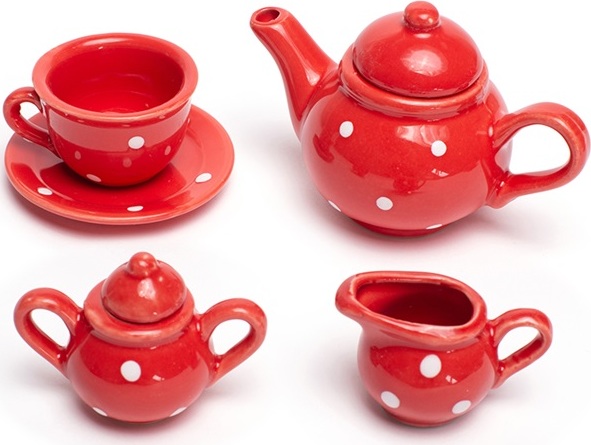 Vychutnajte si elegantný čajový večierok s touto porcelánovou čajovou súpravou. Zahŕňa štyri šálky a podšálky, kanvicu, cukorničku a džbánok na mlieko. Po ukončení hry, alebo keď je čas na cestovanie, jednoducho uložte čajovú súpravu bezpečne na zodpovedajúce miesta v kufríku. Spĺňa platné európske bezpečnostné normy. Skladá sa z 12 hracích prvkov.