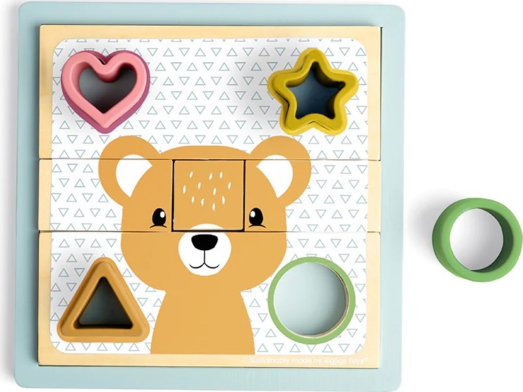 Otestujte zručnosti Vášho dieťaťa pri riešení problémov s touto udržateľnou skladačkou. Na prvý pohľad je to triedič tvarov, ale pozrite sa bližšie a zistíte, že táto šikovná malá hračka slúži ako skrytá hádanka! Prevráťte drevené bloky a poskladajte ich dohromady, aby ste vytvorili obrázok rozkošného medvedíka či lišiaka. Puzzle je skvelé na výučbu rozpoznávania farieb, tvarov, zlepšenie pamäte a jemnej motoriky.