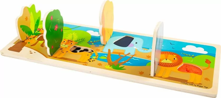 Povzbuďte tých najmenších, aby preskúmavali zrakom a dotykom drevenú senzorickú schému. Čo sa deje na scéne? Aké drzé zvieratko sa skrýva v húšti? Cítiš jeho srsť? Čo môžete vidieť a čoho sa dotknúť na oblohe? Povzbuďte deti, aby diskutovali o scéne ao tom, čo vidia. Rozvíja slovnú zásobu a podporuje rozprávanie. Skvelé pre zmyslový rozvoj a rozvoj koordinácie ruka/oko, jemnej motoriky a obratnosti. Vyrobené z vysoko kvalitných, zodpovedne získaných materiálov. Spĺňa aktuálne európske bezpečnostné normy.
