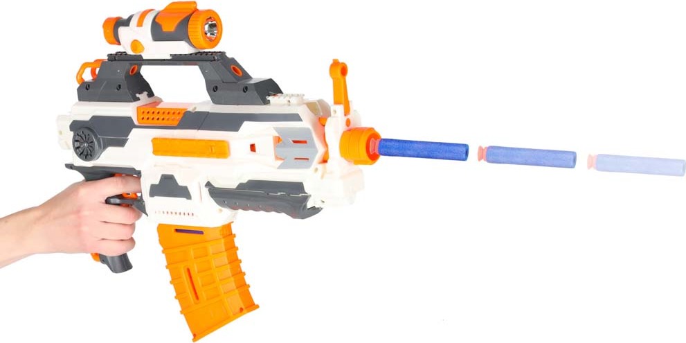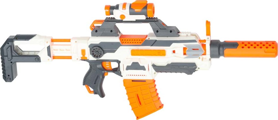 Veľká sada, ktorá vám umožní zostaviť si perfektnú penovú zbraň na šípky. Základom tejto sady je výkonná puška, ku ktorej môžete jednoducho pridať ďalšie komponenty. Hlavná puška je vybavená množstvom taktických líšt. Uprostred nájdete posuvný vyhadzovací otvor – užitočný, pokiaľ sa náboj v zápale bitky zasekne. Hlaveň zbrane má výklopné plexi. Taktické lišty umožňujú pripevniť ďalšie komponenty ako na horné, tak aj na boky zbrane.