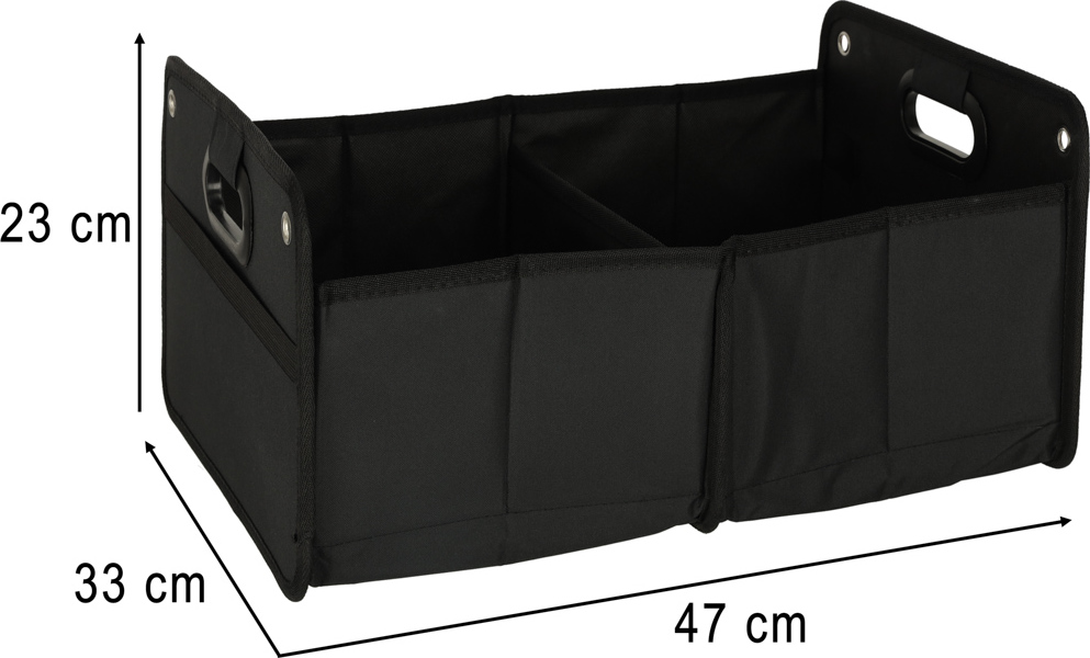 Organizér do auta s priehradkami sa hodí, keď potrebujete pohodlné miesto na uloženie alebo prepravu drobných predmetov. Pomáha udržať si prehľad v kufri a pohodlne zbaliť nákup. Po rozložení zaberá organizér minimum miesta. Je možné ho upevniť vodorovne alebo zvisle pomocou gumičiek a pútok. V aute môžete rozložiť jednu alebo dve priehradky v závislosti od priestorových požiadaviek. Vyrezané rukoväte po stranách umožňujú ľahké nakladanie a vykladanie – organizér pojme približne 32 litrov a unesie zaťaženie až 20 kg.