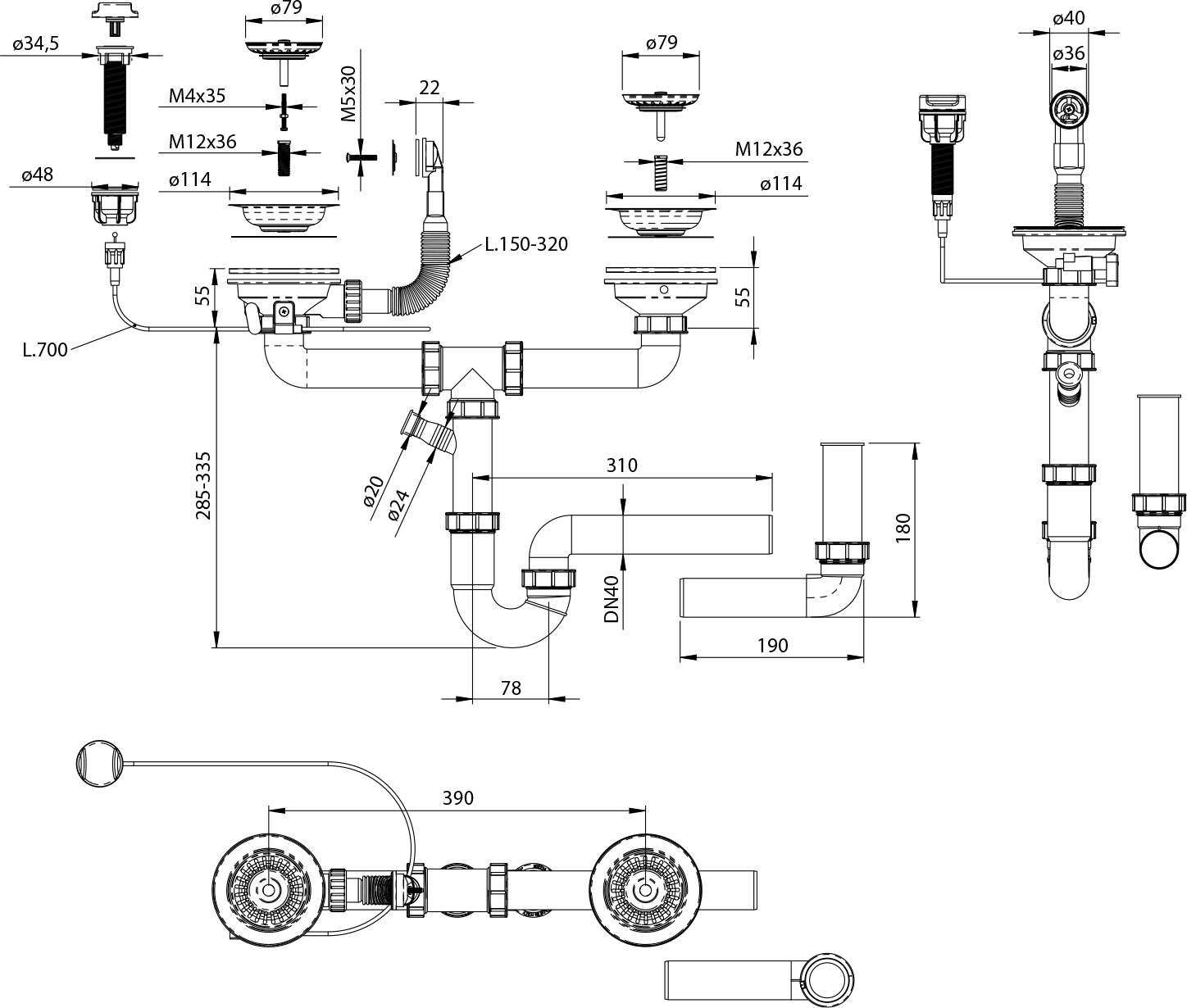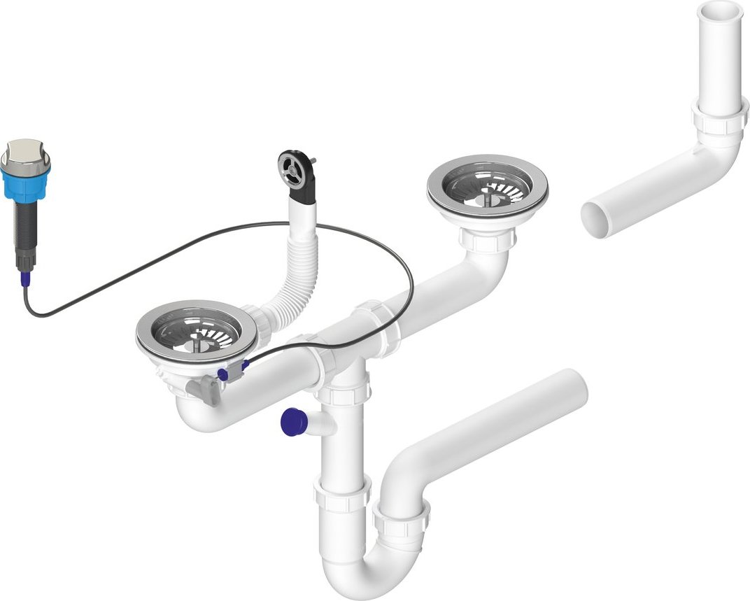 Bruckner Drezový sifón s prepadom, ovládaním a odbočkou, 6/4", pre dvojdrez, vrátane pilety, DN40, biela 155.129.0