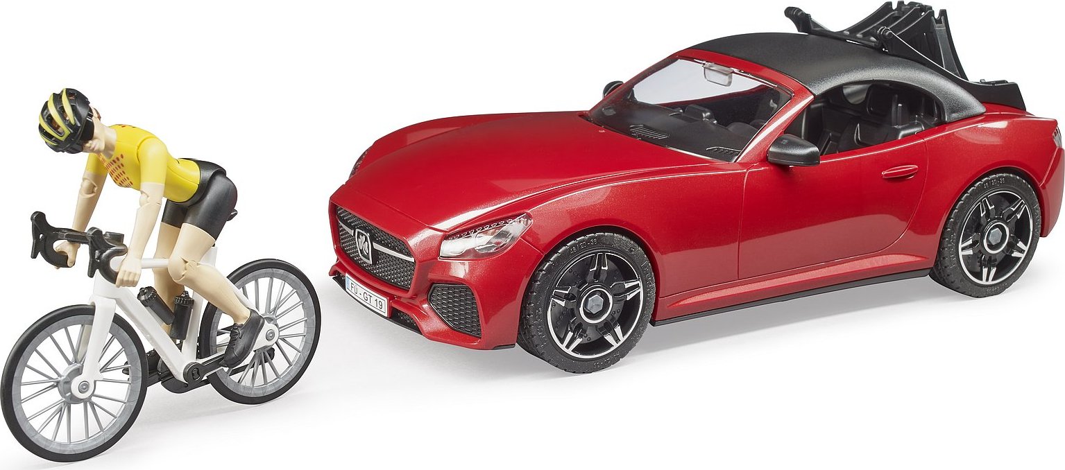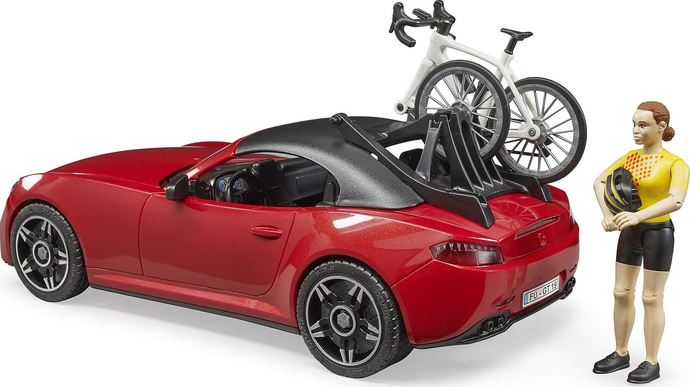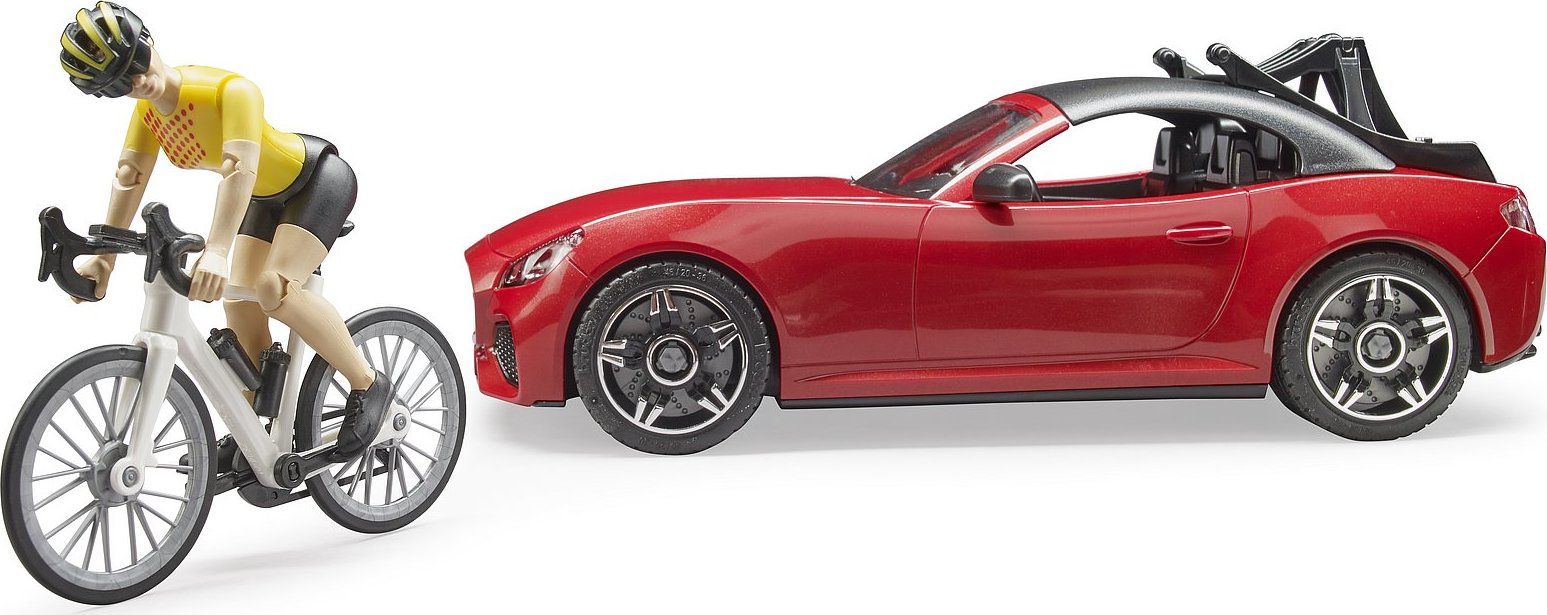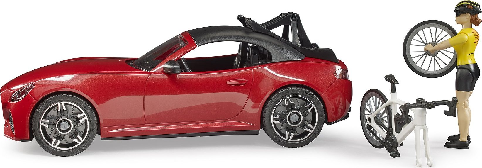 Bruder Športové auto Dodge s figúrkou cyklistky a okolo