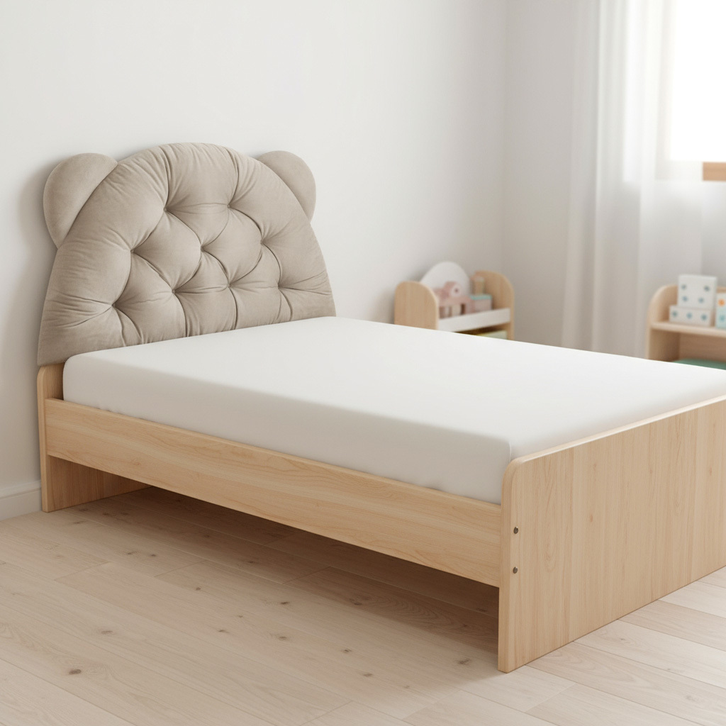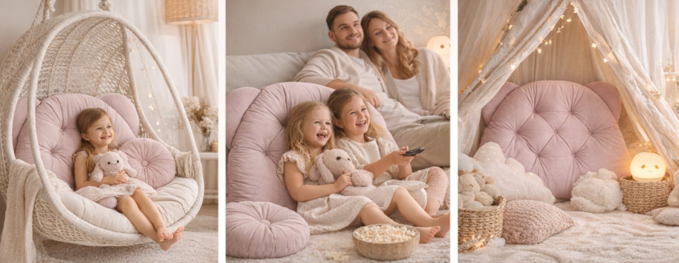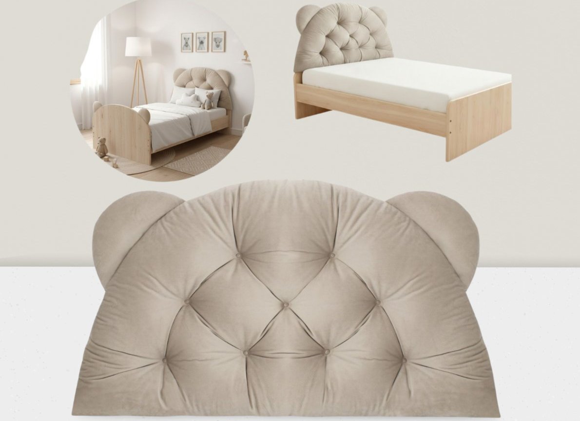 Vankúš na čelo postele/opierka hlavy BEAR Velvet je ideálny pre postele o šírke 90 cm a je vhodný pre deti, teenagerov aj dospelých. Dodá vašej izbe alebo spálni útulný nádych. Vankúš je mäkký ako plyš, má polooválny tvar s roztomilými medvedíkovými ušami a poskytuje pohodlnú oporu chrbta a krku pri čítaní, štúdiu alebo sledovaní filmov. Starostlivá ručná práca a 9 ozdobných prešívaných vzorov dodávajú objem a zároveň stabilizujú výplň. Opierku je možné tiež využiť ako mäkké operadlo na sedenie na podlahe – ideálne do detskej izby. Jednoducho oprite opierku o stenu, pridajte koberec a niekoľko vankúšov a vytvorte tak útulný kútik na čítanie, kreslenie alebo hranie. Vankúš je tiež ideálny ako dodatočná opora v závesnom hojdacom kresle. Mäkký zamat zvyšuje pohodlie a chráni chrbát a krk pri relaxácii. V típí, stane alebo „tajnej skrýši“ sa opierka hlavy BEAR stáva mäkkým operadlom a dekoratívnym prvkom. Dodáva útulnosť a vaše dieťa viac dychtí tráviť čas vo svojom vlastnom priestore. Ideálne na hranie, relaxáciu a čítanie príbehov.