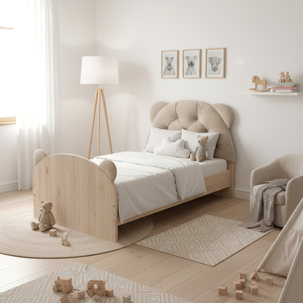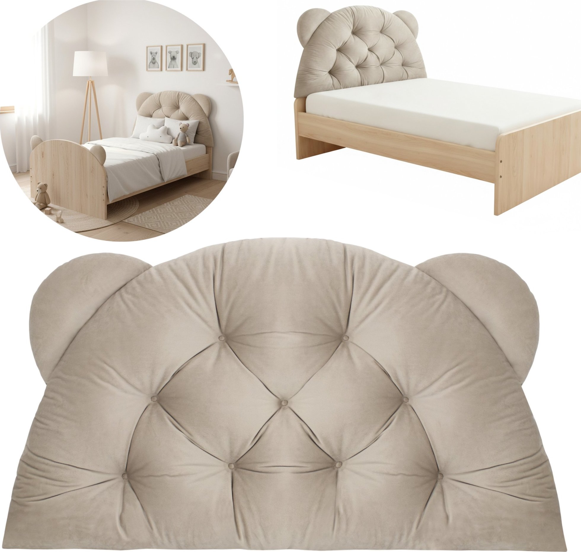 Vankúš na čelo postele/opierka hlavy BEAR Velvet je ideálny pre postele o šírke 90 cm a je vhodný pre deti, teenagerov aj dospelých. Dodá vašej izbe alebo spálni útulný nádych. Vankúš je mäkký ako plyš, má polooválny tvar s roztomilými medvedíkovými ušami a poskytuje pohodlnú oporu chrbta a krku pri čítaní, štúdiu alebo sledovaní filmov. Starostlivá ručná práca a 9 ozdobných prešívaných vzorov dodávajú objem a zároveň stabilizujú výplň. Opierku je možné tiež využiť ako mäkké operadlo na sedenie na podlahe – ideálne do detskej izby. Jednoducho oprite opierku o stenu, pridajte koberec a niekoľko vankúšov a vytvorte tak útulný kútik na čítanie, kreslenie alebo hranie. Vankúš je tiež ideálny ako dodatočná opora v závesnom hojdacom kresle. Mäkký zamat zvyšuje pohodlie a chráni chrbát a krk pri relaxácii. V típí, stane alebo „tajnej skrýši“ sa opierka hlavy BEAR stáva mäkkým operadlom a dekoratívnym prvkom. Dodáva útulnosť a vaše dieťa viac dychtí tráviť čas vo svojom vlastnom priestore. Ideálne na hranie, relaxáciu a čítanie príbehov.