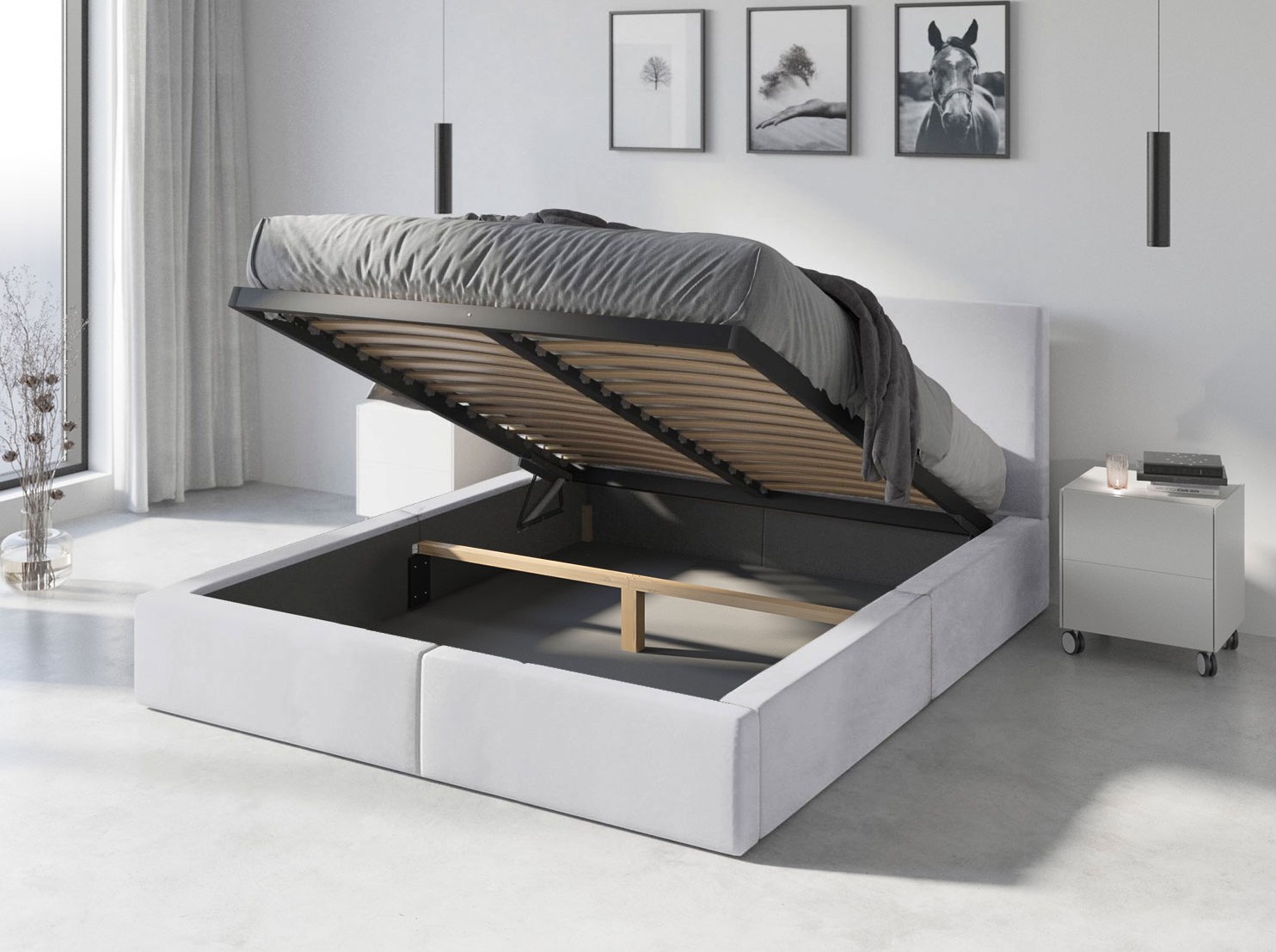 Čalúnená posteľ HILTON s úložným priestorom - 200x140 cm - biela