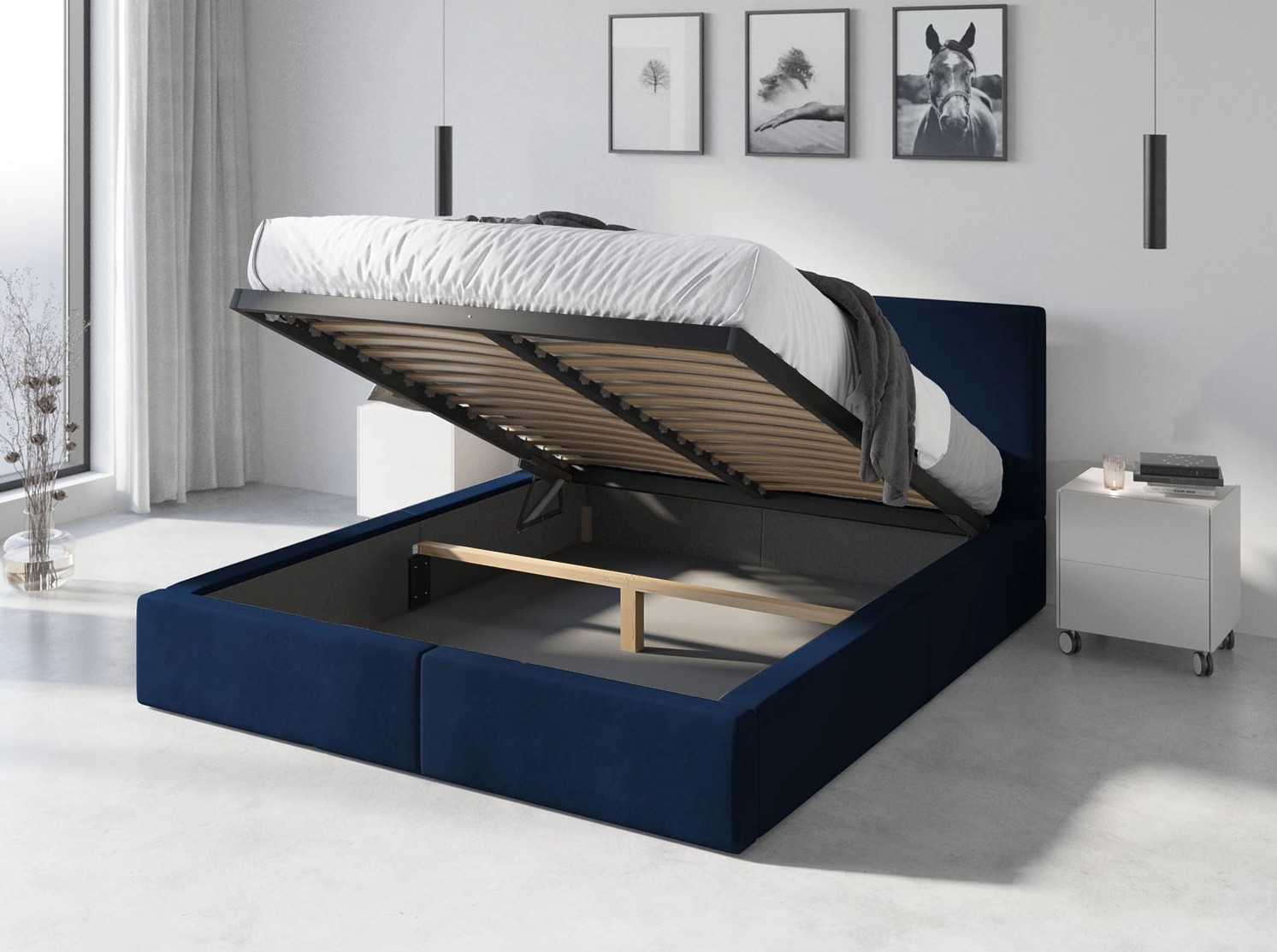 Čalúnená posteľ HILTON s úložným priestorom - 200x160 cm - tmavo modrá