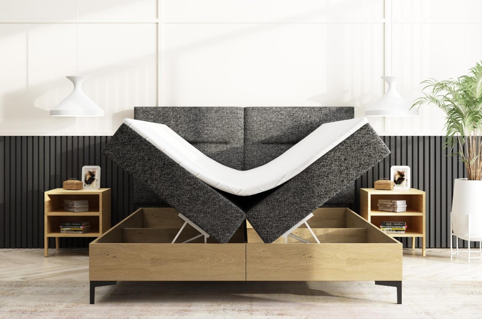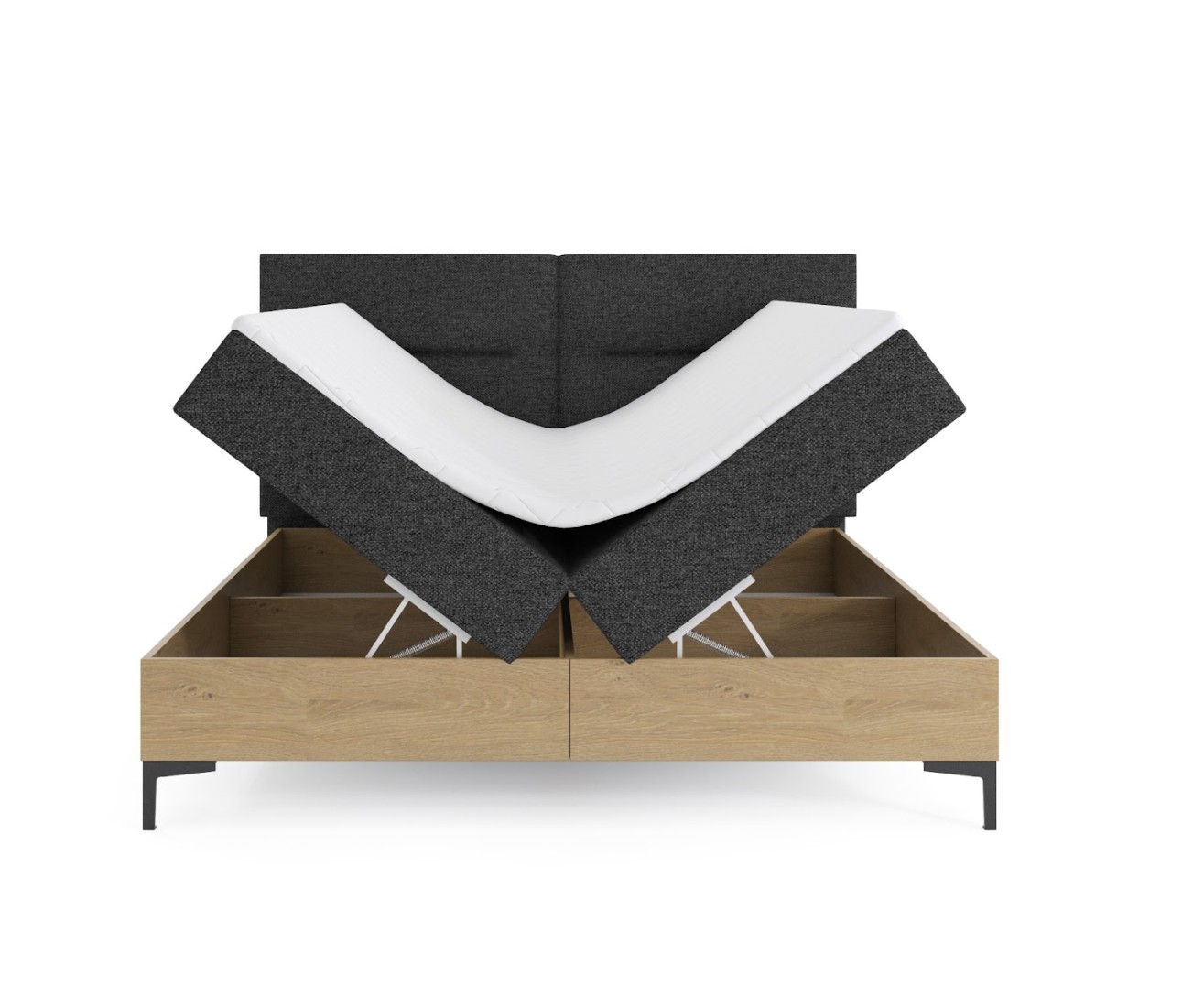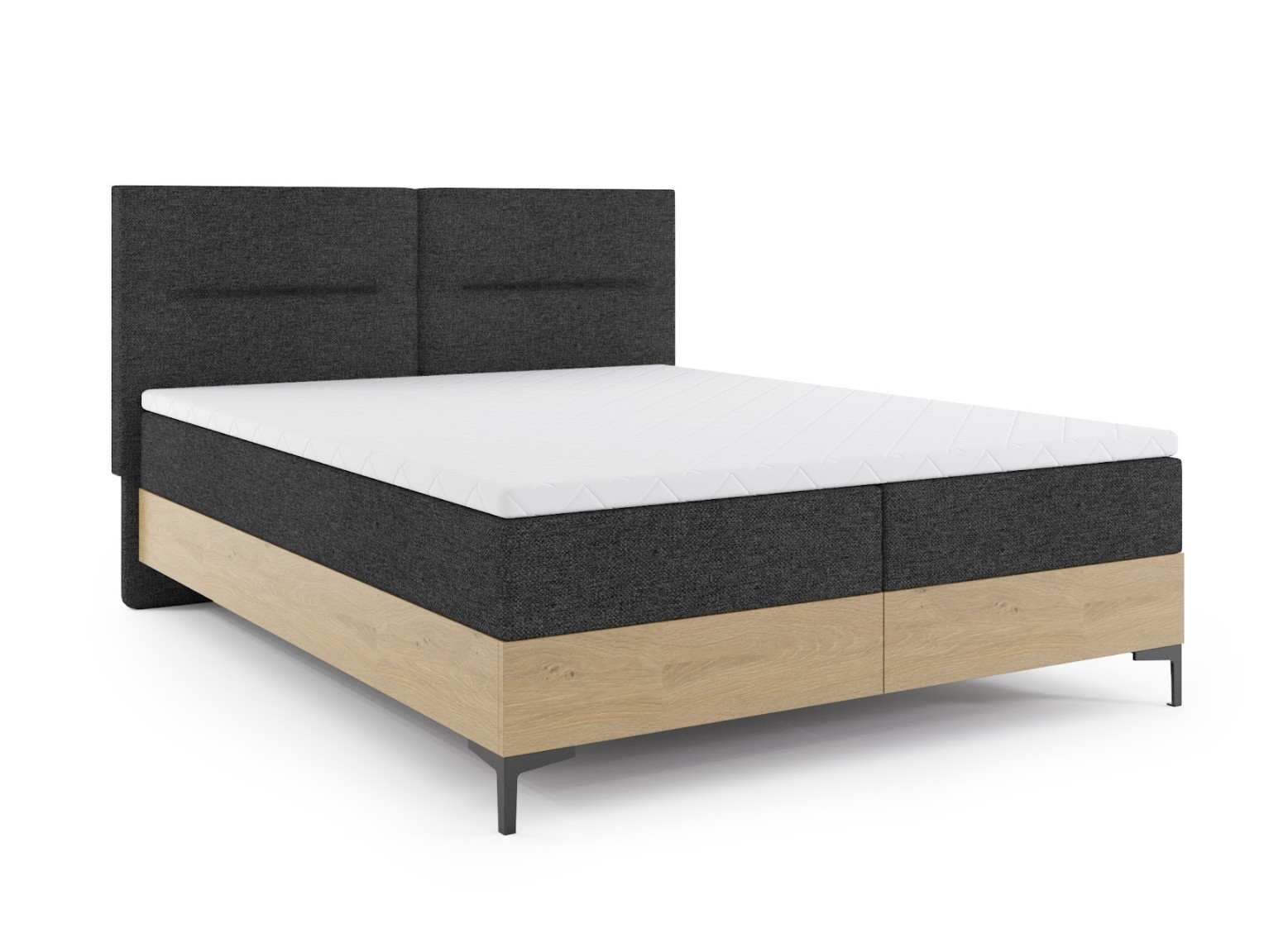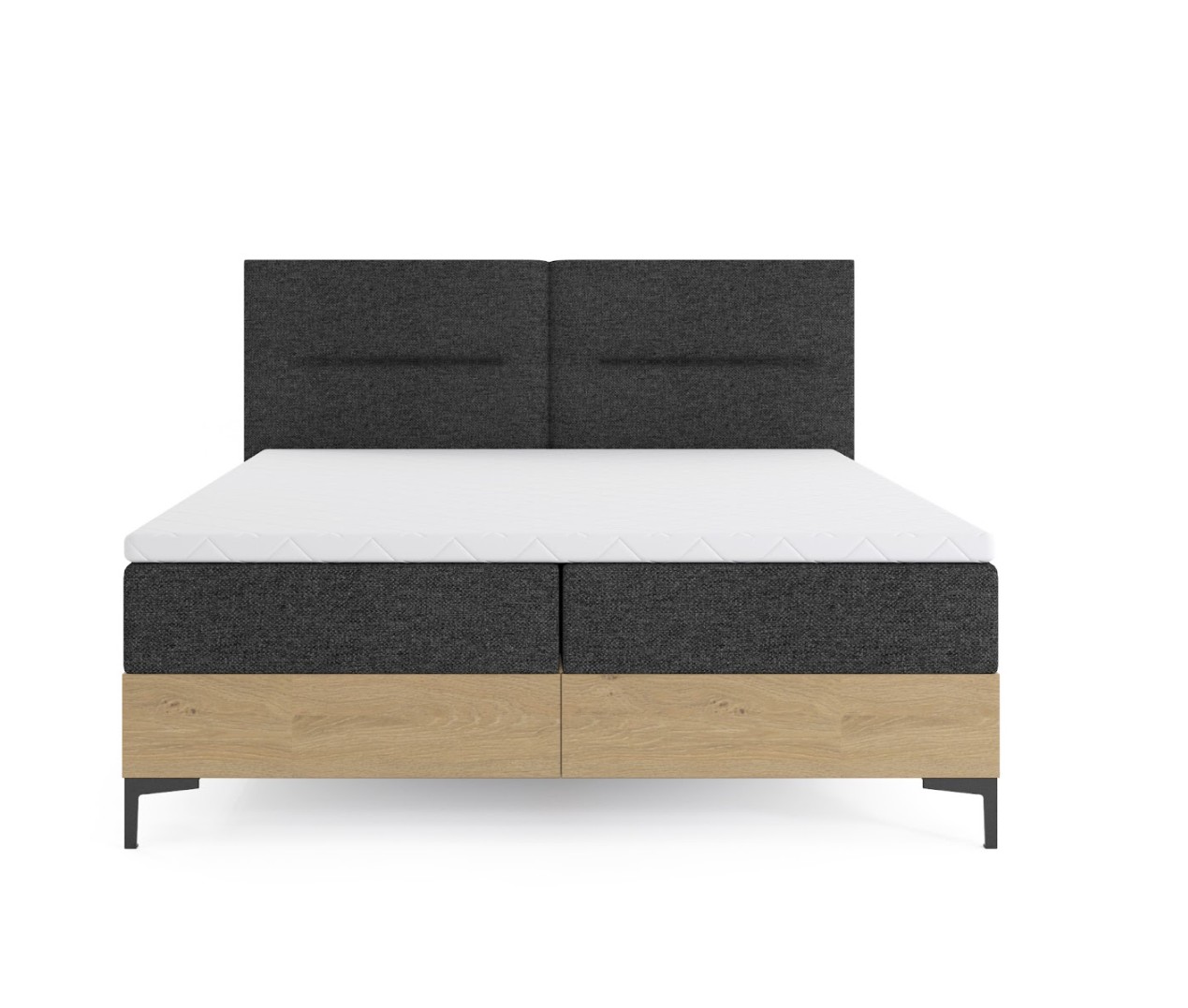 Oddýchnite si v pohodlí kvalitnej postele modelu IMPERIAL. Rám postele je vyrobený z prírodného dubového dreva, ktoré sa vyznačuje svojou odolnosťou a rafinovaným vzhľadom. Jemná kresba a teplý dubový odtieň dodávajú tomuto kusu nadčasovú eleganciu a jedinečný charakter. Čelo postele je čalúnené. Čalúnený materiál má jemnú štruktúru a je odolný proti oderu, žmolkovaniu a svetlu. Súčasťou postele sú dva matrace vyrobené z vysoko odolnej peny a čalúnené látkou, ktorá zaujme svojim moderným vzhľadom a univerzálnym štýlom. Vďaka tlmenej farbe sa perfektne hodí do svetlých aj tmavých interiérov. Táto kombinácia estetiky a odolnosti dodá každému priestoru útulnosť a eleganciu. Posteľ je dodávaná vrátane dvoch úložných priestorov (oddelenými deliacimi priečkami) s pružinovými zdvihákmi. Výsledný vzhľad postele umocňujú tenké kovové nohy, ktoré posteli dodávajú ľahkosť.