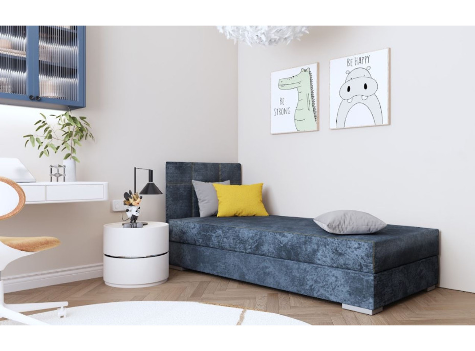 Čalúnená posteľ SINTRA I s praktickým úložným priestorom na lôžkoviny má príjemný látkový povrch. Vďaka tomuto riešeniu je posteľ pohodlná na spanie a zároveň praktická na každodenné použitie. Látkové čalúnenie a vysoké čelo dodáva posteli elegantný nádych. Rozmery spacej plochy 200x90 cm sú vhodné pre jednu osobu, takže je táto posteľ ideálna do malých spální či izieb alebo pre ľudí, ktorí potrebujú miesto na spanie, ale nemajú v miestnosti veľa miesta. Látkový poťah matraca poskytuje pri spánku väčšie pohodlie. Posteľ dodávame s penovým matracom alebo pružinovým bonelovým matracom s výškou 14 cm.