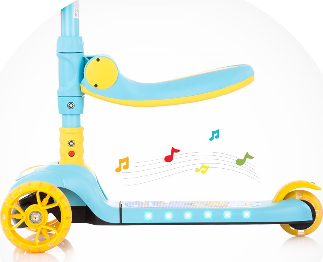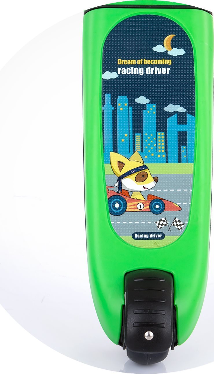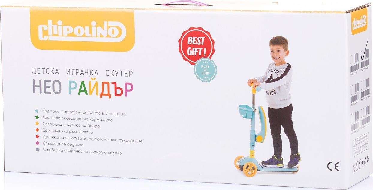 Stabilná kolobežka NEO RIDER s LED svetlami je multifunkčný výrobok pre deti s 2 rôznymi spôsobmi použitia podľa zdatnosti. dieťa môže samostatne jazdiť na kolobežke alebo ako na odrážadle odľahčený rám váži iba 3,68 kg hliníková T-tyč výškovo nastaviteľné riadidlá sedátko možno sklopiť gumové protišmykové rukoväte super široké predné kolesá s farebnými LED svetlami priemer koliesok: predné 120 mm, zadné 80 mm brzda na zadnom kolese široké protisluzové stúpadlo s LED svetlami a melódiami úložný košík vpredu Pre prevádzku je potrebné 3 ks 1,5 V batérie AAA (nie sú súčasťou balenia). Hmotnosť: 3,43 kg. Rozmery: 56 x 29 x 78 cm Táto hračka bola vyrobená v súlade s požiadavkami európskych smerníc a noriem v súvislosti s bezpečnosťou hračiek. UPOZORNENIE: Vždy používajte ochranné pomôcky (prilbu, lakťové a kolenné chrániče, rukavice) - nie sú súčasťou balenia.