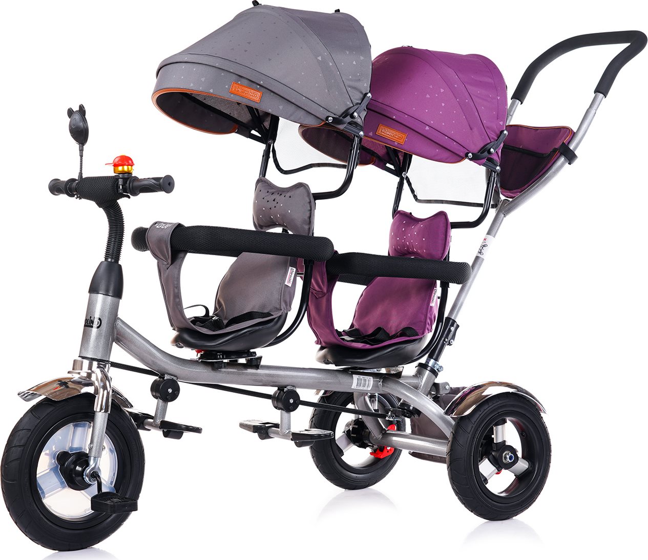 Detská trojkolka pre dvojičky značky CHIPOLINO je výborným dopravným prostriedkom pre nové zážitky. Trojkolka je vhodná pre dve deti, každé s maximálnou hmotnosťou 40kg.