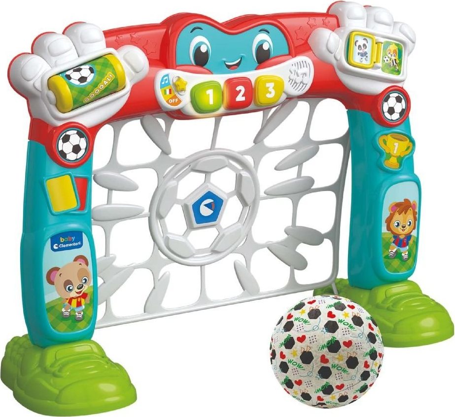 Interaktívny futbalový gól, ktorý rozpoznáva strelené góly, vrátane mäkkej lopty a množstva realistických zvukov. Tri farebné tlačidlá sa rozsvietia a aktivujú realistické zvuky a hudbu, ktoré vedú dieťa k interaktívnemu a zábavnému hernému zážitku. , čo robí akciu strieľanie gólov náročnejšie a motivuje dieťa k počítaniu strelených bodov. Mäkká látková lopta je prateľná.